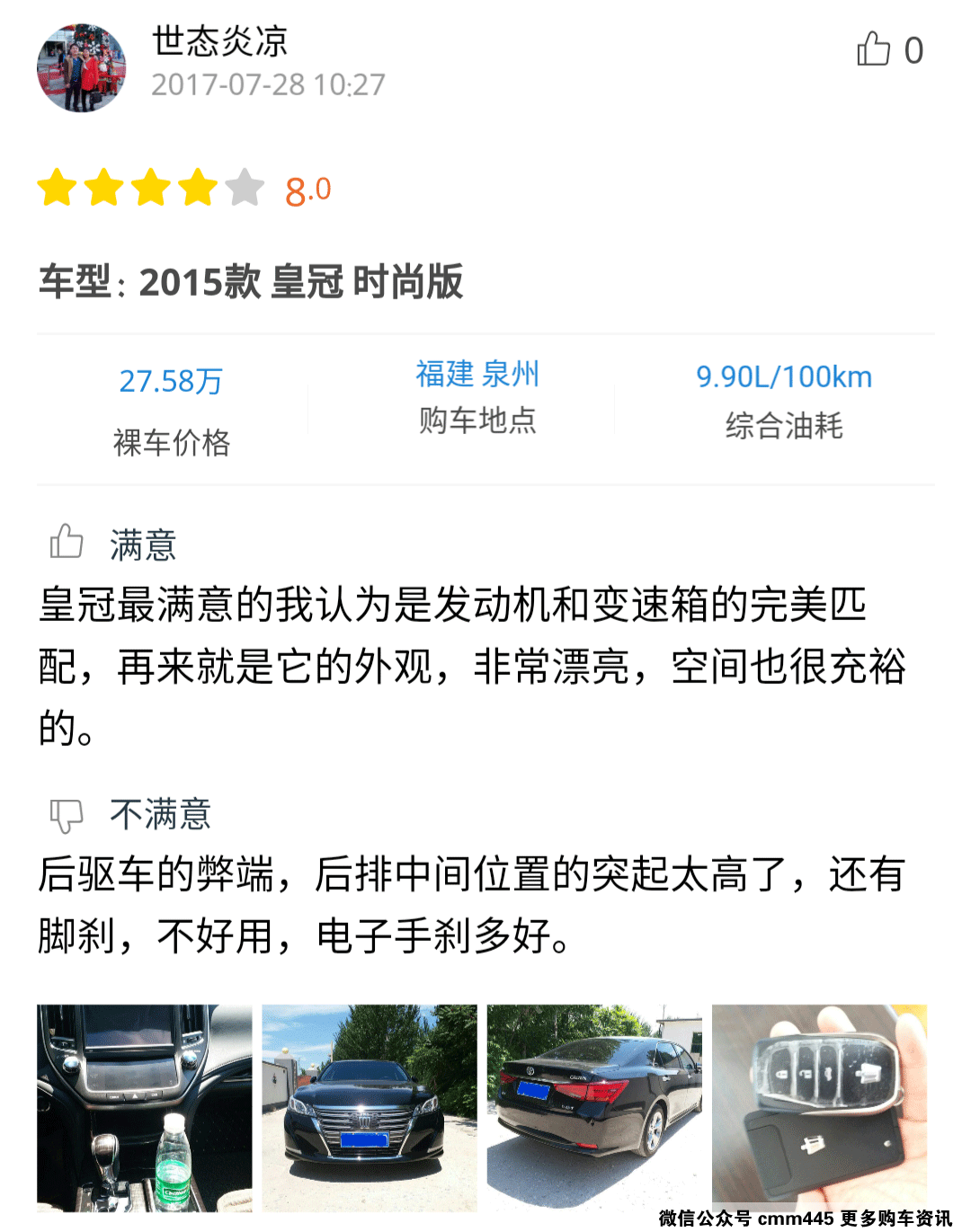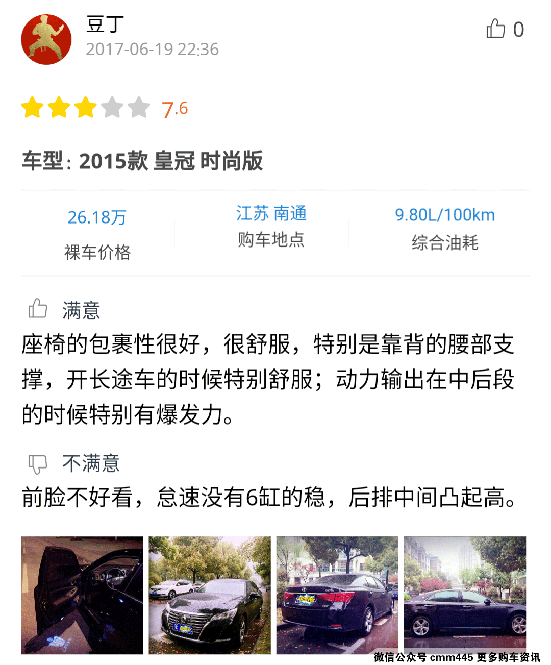 感兴趣的朋友可以点击小程序查看详细口碑,从口碑中可以看到,车主们对皇冠的动力总成匹配、前卫的造型十分满意。但对于后排地板隆起颇有不满!