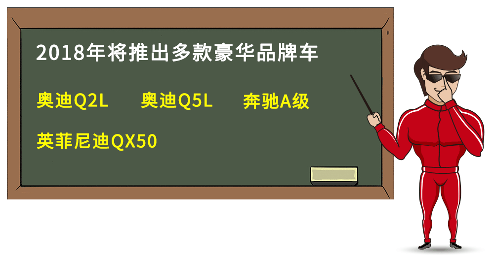 在2018年汽车界中将会推出多新款豪华品牌车,其中不乏有价钱亲民的奥迪Q2L、内饰经过完美升级的奔驰A级以及期盼已久的全新英菲尼迪QX50等,相信每一款新车的亮点都会触动你的心,而且价钱方面也绝对不会让你失望。