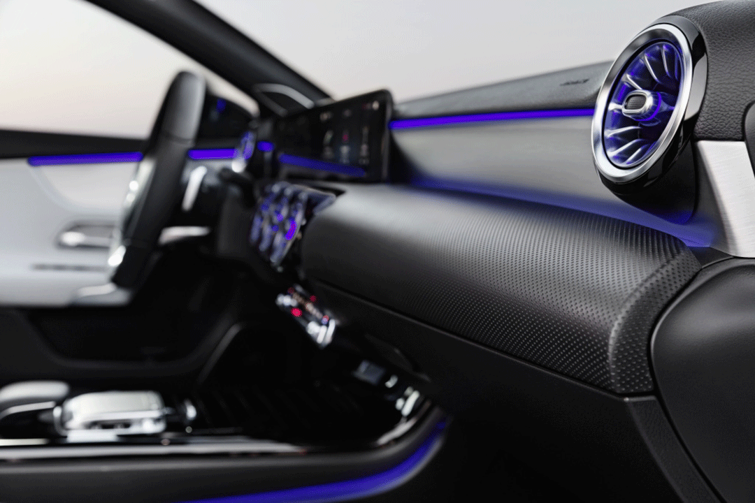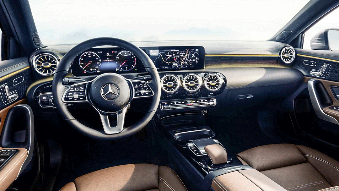 全新一代奔驰A级的看头在内饰方面,观其内的气场不亚于奔驰C级、E级等同品牌车型,同样赋予了奔驰所专享的豪华设计语言,全新的涡轮状出风口加之氛围灯的衬托下,尤其显眼并富有新鲜感。新车取消了现款车型的地台换挡方式,换之奔驰家族的换挡,从而增加了储物空间的实用性,不愧为全新一代车型。