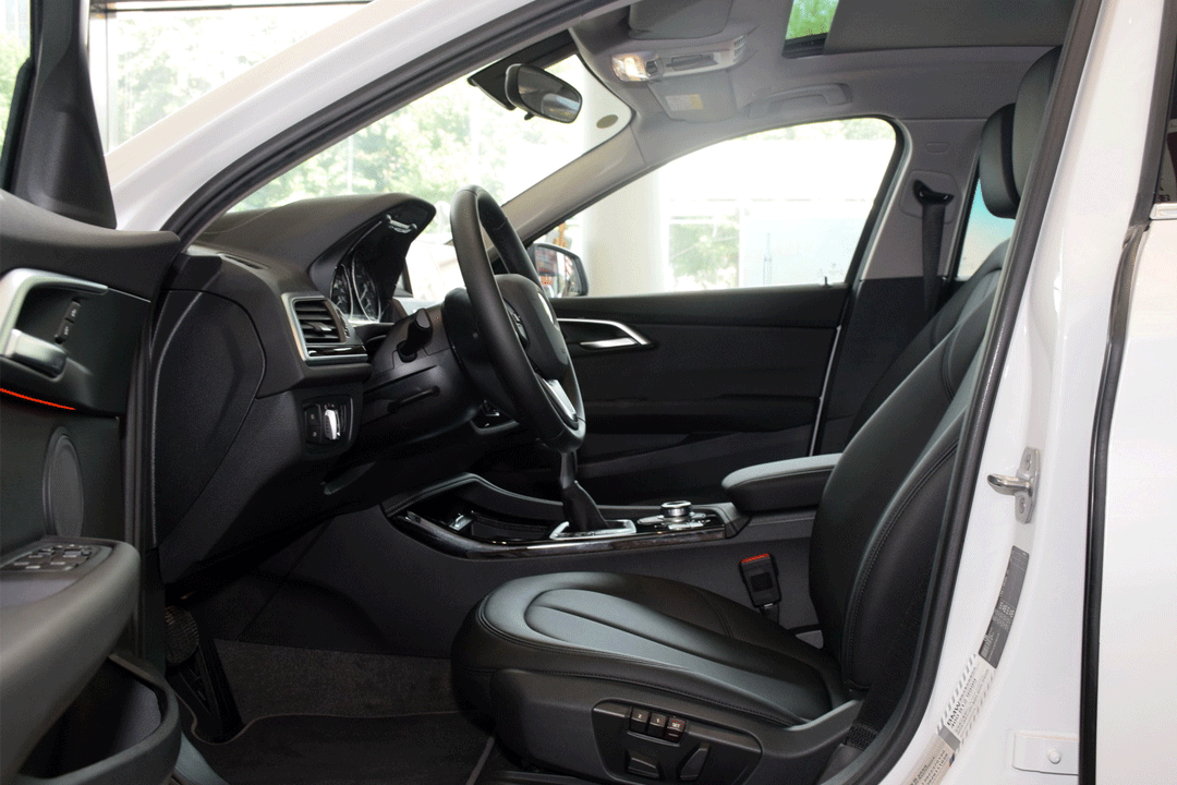 在内饰方面,它的布局分明清晰,中控台上部采用软质材料覆盖并且带有缝线装饰,中部配有高亮钢琴烤漆面板,整体时尚感较好而且内饰的做工细致、质感颇为优良!车门内衬也采用皮革和搪塑工艺材质包裹,整体质感良好。