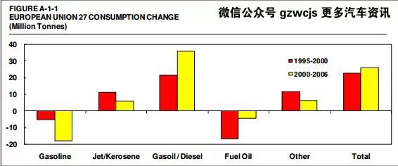 欧洲本来汽油就用不完,柴油就不够用,越发展这个趋势越明显;美国汽油柴油基本上使用量变化不大,汽油略升,柴油略降;中国呢?汽、柴油需求均高速上涨;想想也好解释,我国正处飞速发展期,能源需求大大的;欧美基本上已经发展到一定水平,国家发展放缓,石油产品需求也保持在一定数量不再激增,但有意思的是,石油炼化出的汽、柴油比例一定,美国对汽、柴油的需求和这个提炼比例差不多,而欧洲……貌似……眼里只有柴油……多出来汽油用不掉……