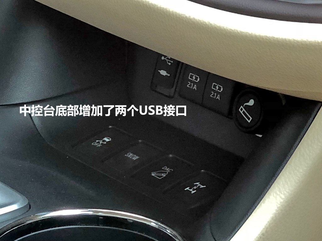 内饰在实用性方面配置提升明显,前排增加了两个USB接口,而后排增加了两个USB接口和一个12V电源接口。