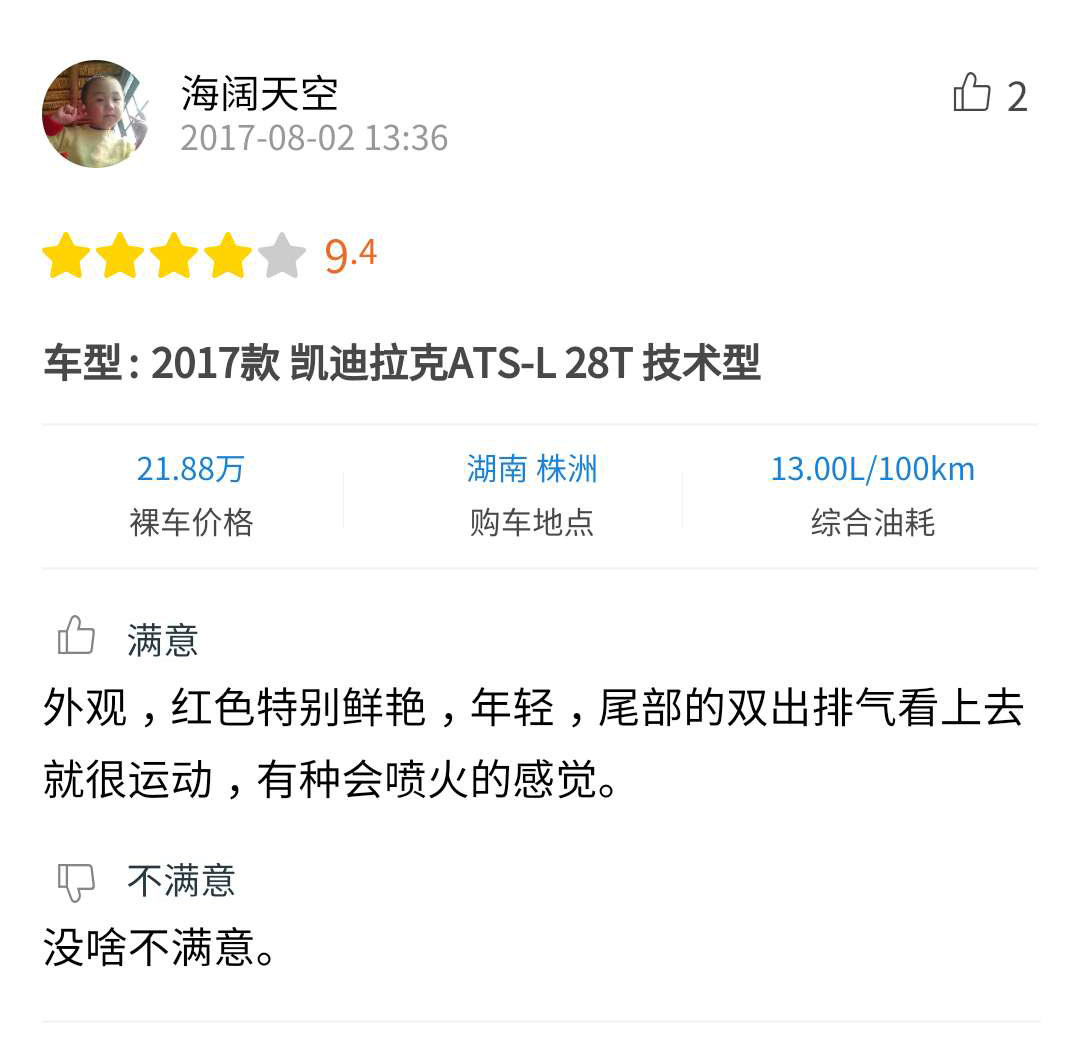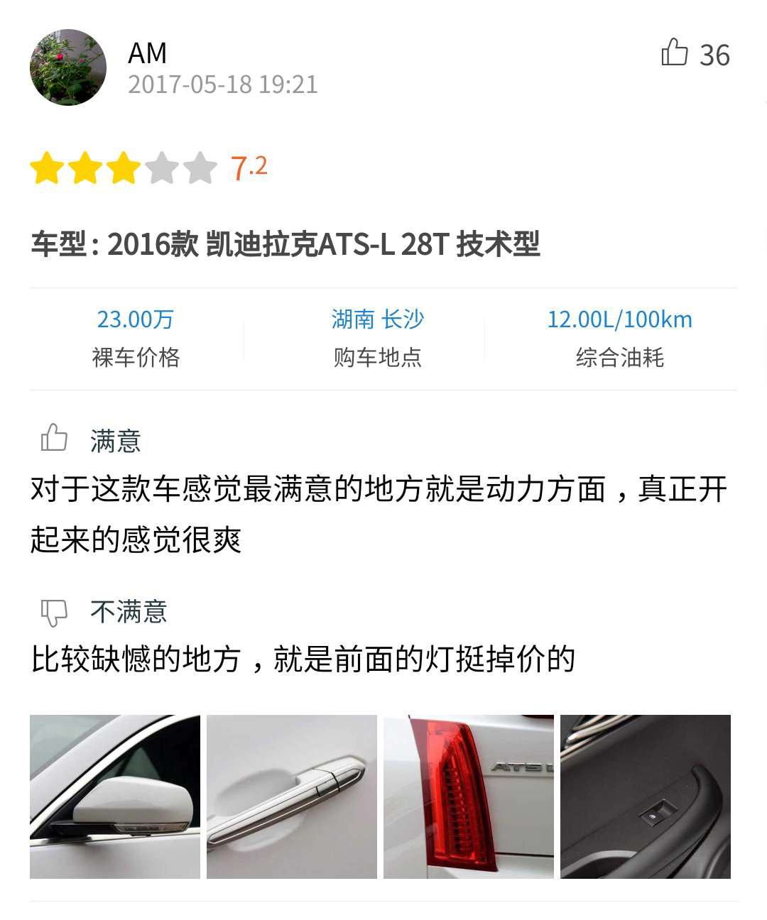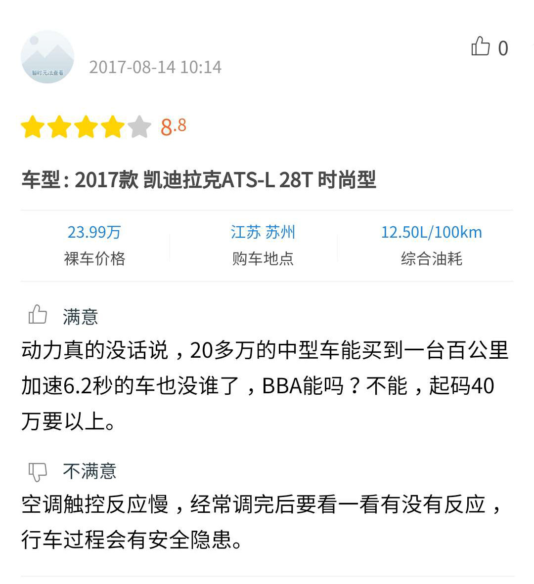 “指哪打哪”也是车主们对ATS-L操控方面最直观的评价。然而,对于ATS-L争议最大的肯定就是它的油耗了,不同的车主有不同的见解,有的人说最低可以开到7/8L油耗,还可以接受,而有的人说随便都上到12/13L油耗。