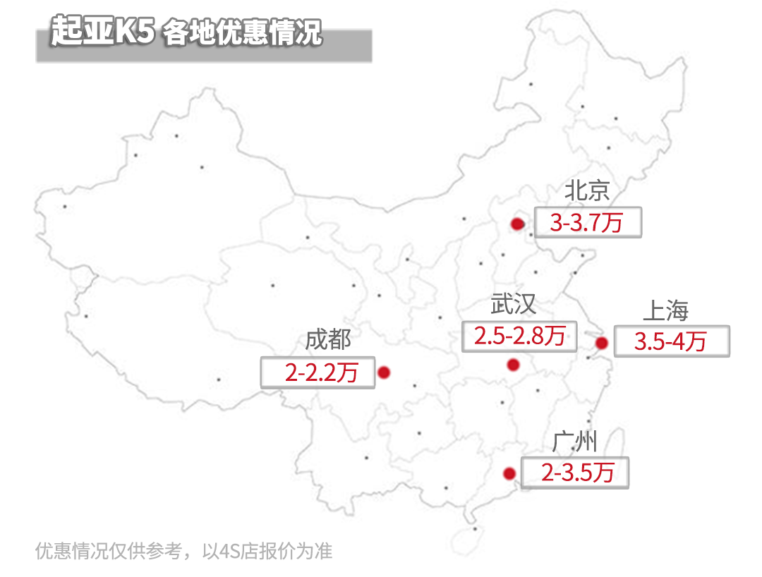 起亚K5在广州和北京需要搭配店内贷款、上牌、置换等项目,另外,北京地区还需加装饰、购买礼包等等。而在上海、武汉、成都等地以现金优惠为主,价格还是相当实惠的!