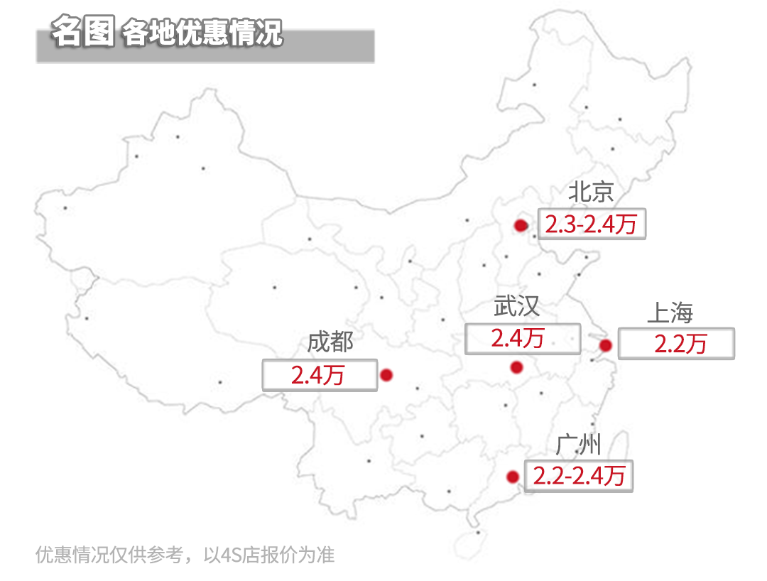 名图在广州、北京、武汉、成都等地区仅需搭配店内上保险、贷款等项目,而在上海地区则为现金直接优惠,这让名图的终端售价其实和速腾、威朗的车型相差无几!