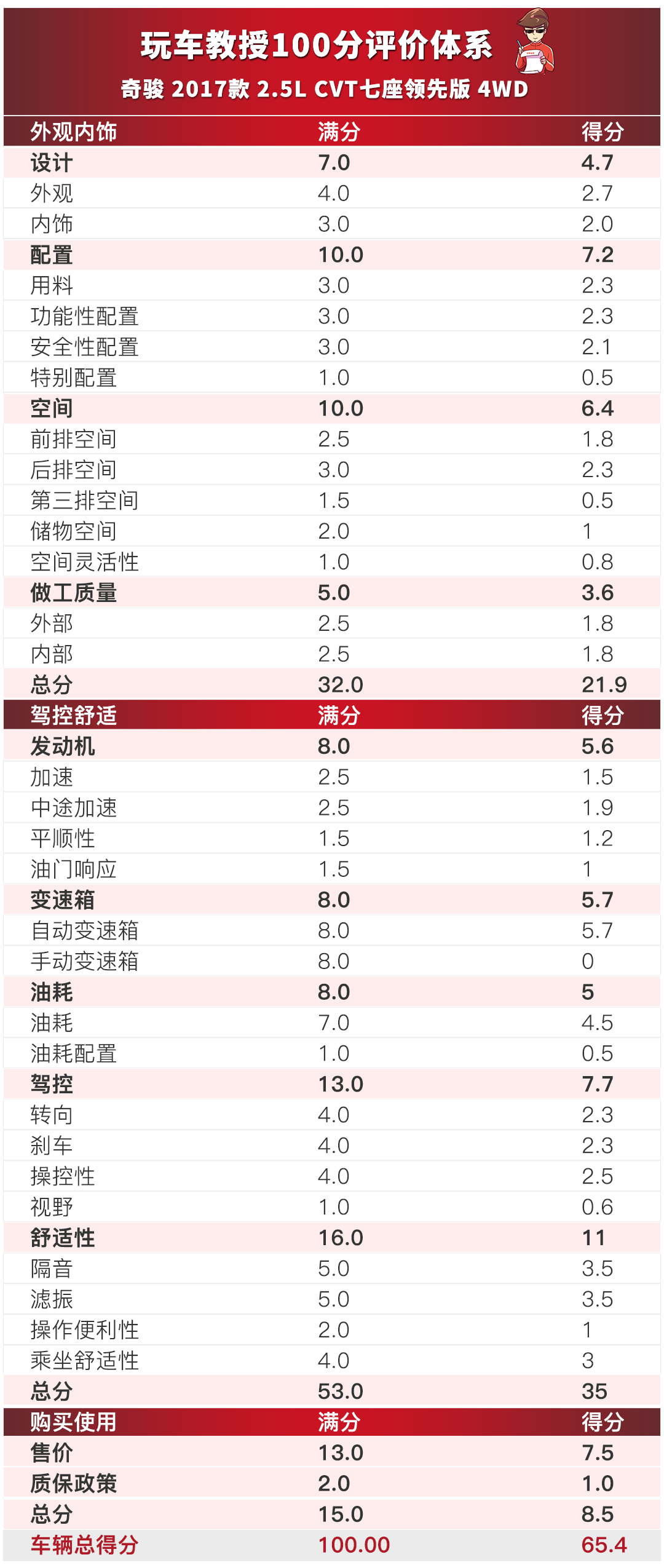 奇骏是一个很有特点的选手,虽然动力不如对手那么强,但是在舒适性和经济性方面优势十分大,车内空间和尺寸也很不错,较高的离地间隙让人很有信心,加上不错的配置带来的高性价比,奇骏还确实比较值得购买!