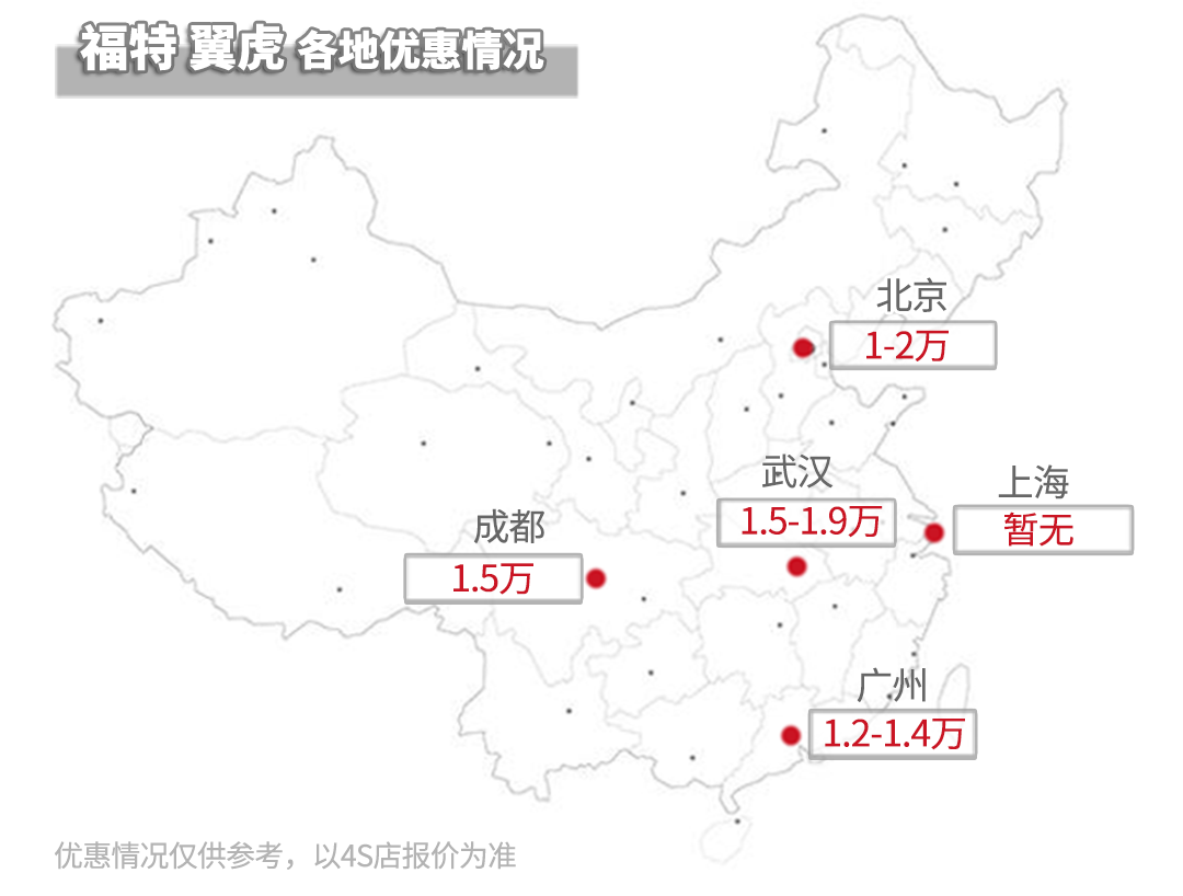 咱们发现翼虎的优惠幅度中规中矩,在广州地需搭配店内置换、贷款、上保险、上牌等项目,在北京、武汉地区的一些4S店还需加点装饰。在成都地区则以现金优惠。