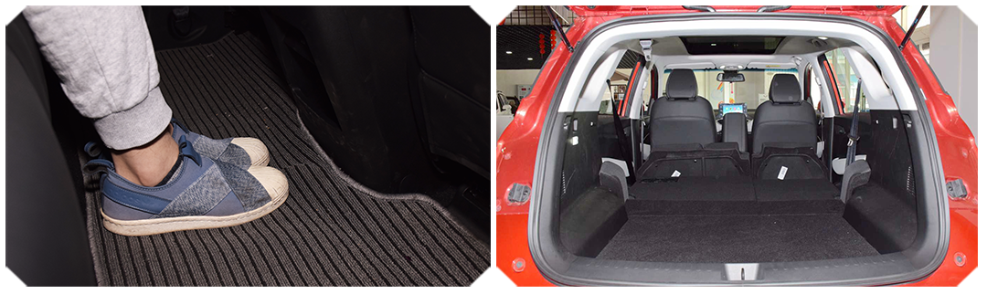 前后排都有一拳有余的头部空间,并且后排腿部空间十分可观,看图你就知道了~同时中央地板很平整,还配有中央头枕,我想中间乘客的舒适性还是挺有保障的。