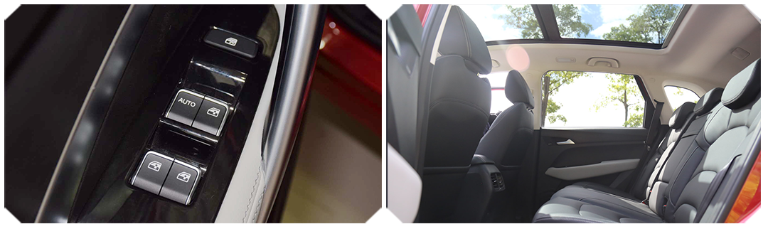 4、顶配车型的主驾驶位支持车窗一键升降,还有采光面积约为0.79平方米的全景天窗。