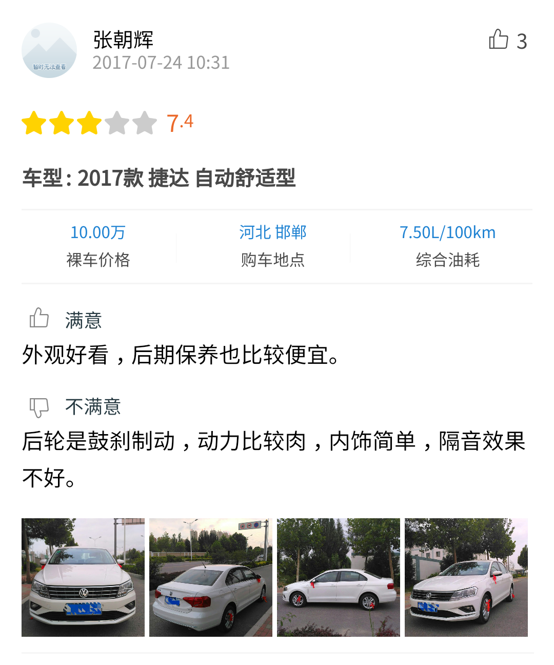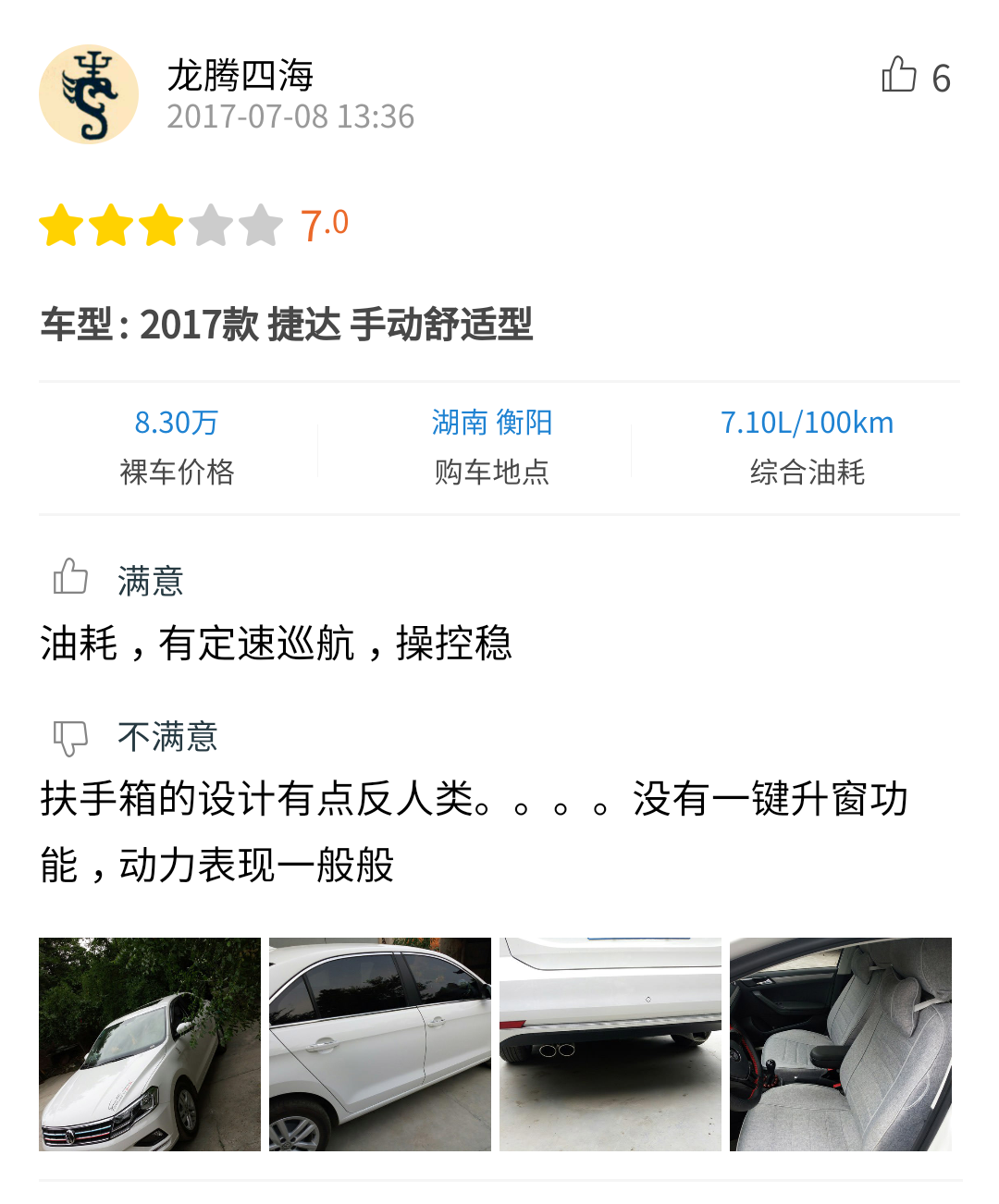 从车主口碑中,比较直观的是车主们对捷达的油耗都非常满意,以及后期保养也比较便宜。不满意的地方也没有什么硬伤,都是一些无伤大雅的小问题而已。综合各方面表现,其实捷达的表现还是比较均衡的,是一款很实在的车型。