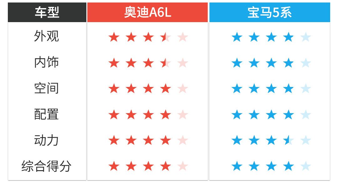 宝马5系跟奥迪A6L(当然还有个奔驰E级)作为这个级别里的标杆车型,其实相差度很小。购车考虑的因素不同,选择当然也不同,如果你喜欢宝马5系的内饰设计,当然会认为宝马5系好;如果喜欢动力稍微大那么一点点的,当然是钟情奥迪A6L了。其实教授认为两车都是王者,关键是买车的您怎么看?这个才是最重要的,欢迎在下方留言表达自己的看法。