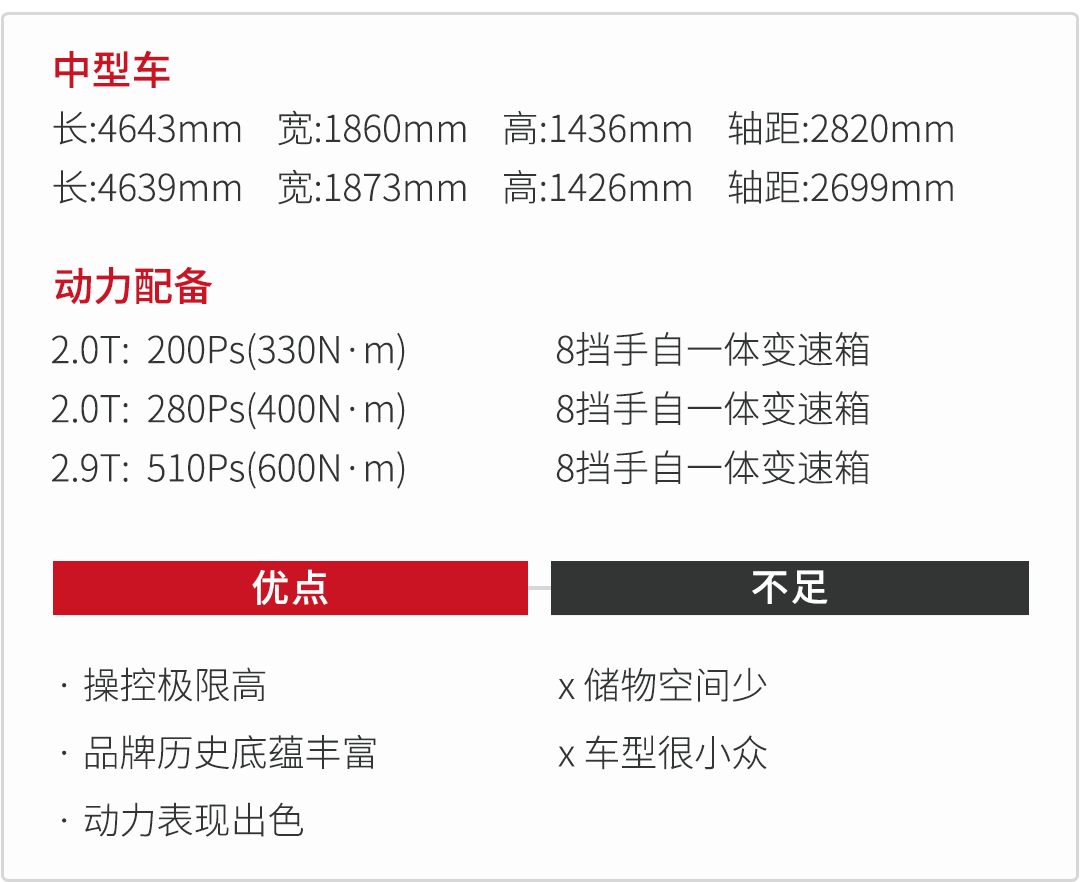 而如果你对操控和性能有追求的话,那教授比较推荐280HP豪华版,280匹马力,400N·m扭矩,百公里加速官方成绩5.2秒,在ZF 8AT的出色表现下,日常的通勤也能让你充满乐趣,当然,如果想操控性能或者驾驶激情更上一层楼,建议换掉那套四季胎。