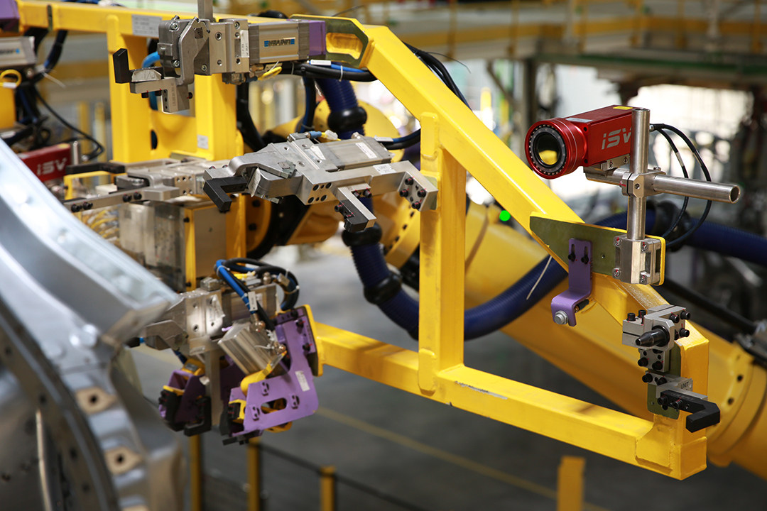 视觉引导系统让智能机器人精确计算出零部件间偏差,让每一次抓取、拼装精益求精。威马全球首创的动态发光logo、内饰旋转大屏的安装,以及前后风挡全自动抓取、涂装、安装均是受益环节。