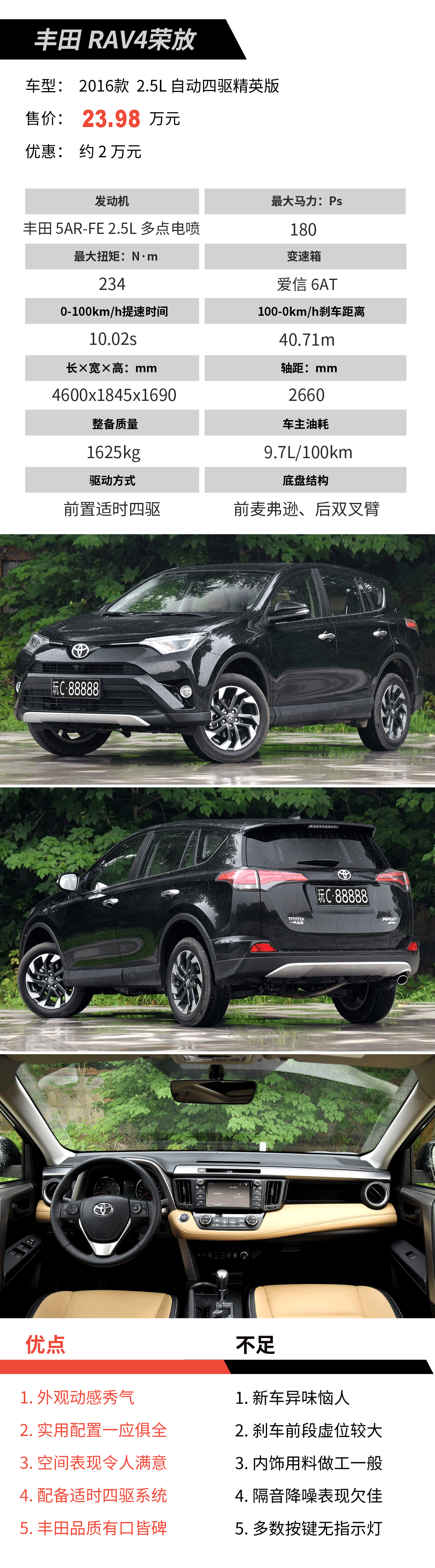 点评:Keen Look前脸设计带来的“炙热眼神”为动感的外观平添几分亮彩,只是塑料感浓烈的内饰与其相衬表里不一;此外,全尺寸备胎的配备令其后备厢隆起如“公主坟”,好在平顺的动力输出为其挽尊不少。