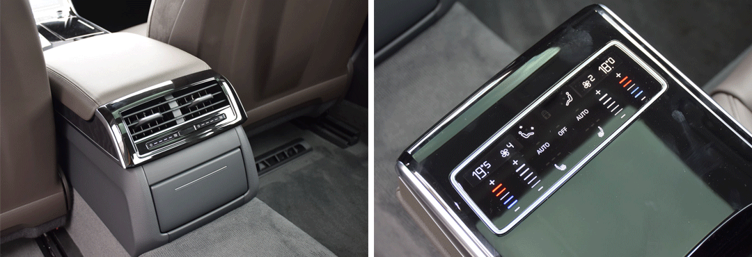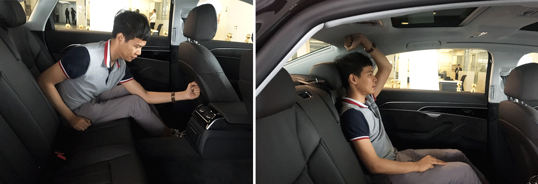 而乘坐在后排空间完全不是问题,腿部空间有一个小臂。而翘着二郎腿乘坐才是奥迪A8后排的正确打开方式。