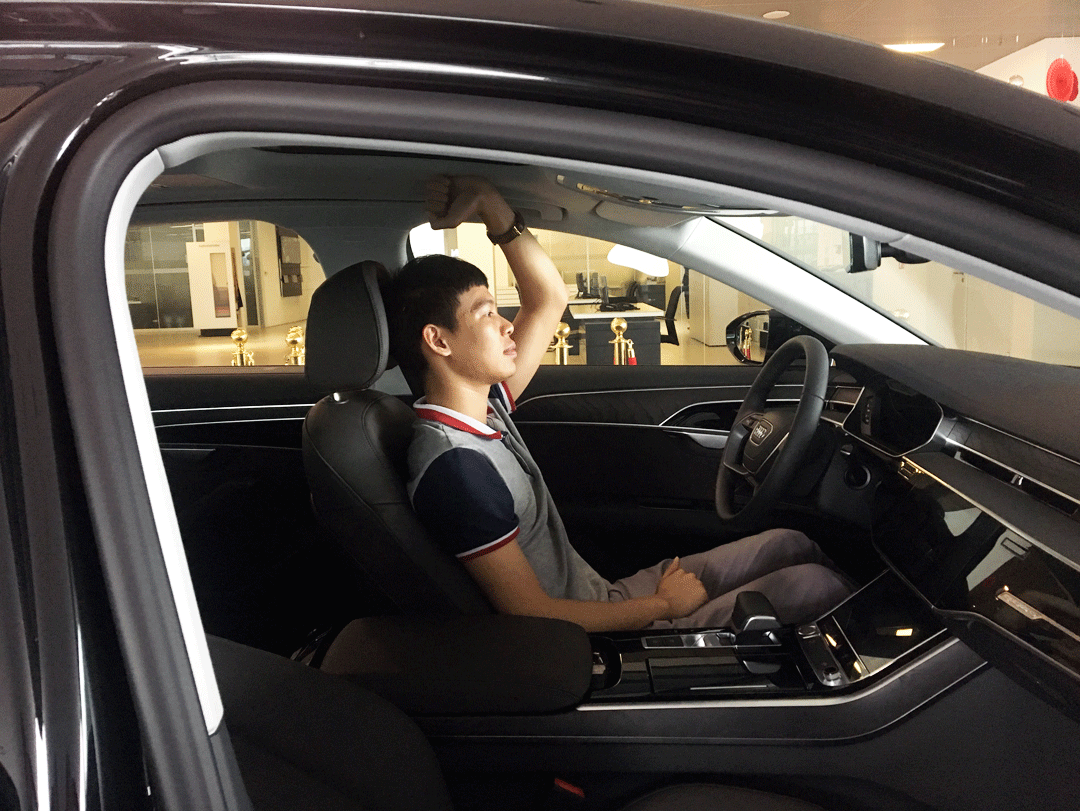 近日,朗编得知在广州番禺的一家奥迪4S店已经有全新一代的奥迪A8到店!得知这一重要信息的我马上抛开手中的粽子,带上小雅就往4S店里跑!