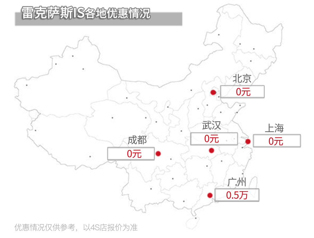 虽然不抱希望,但也还是去调查了一下现款雷克萨斯在各地的优惠状况,当然,结果也是预料之中,除了广州地区有很个别的4S有小小优惠外,其它地区基本没戏,但具体有没有优惠也要以4S店为准。