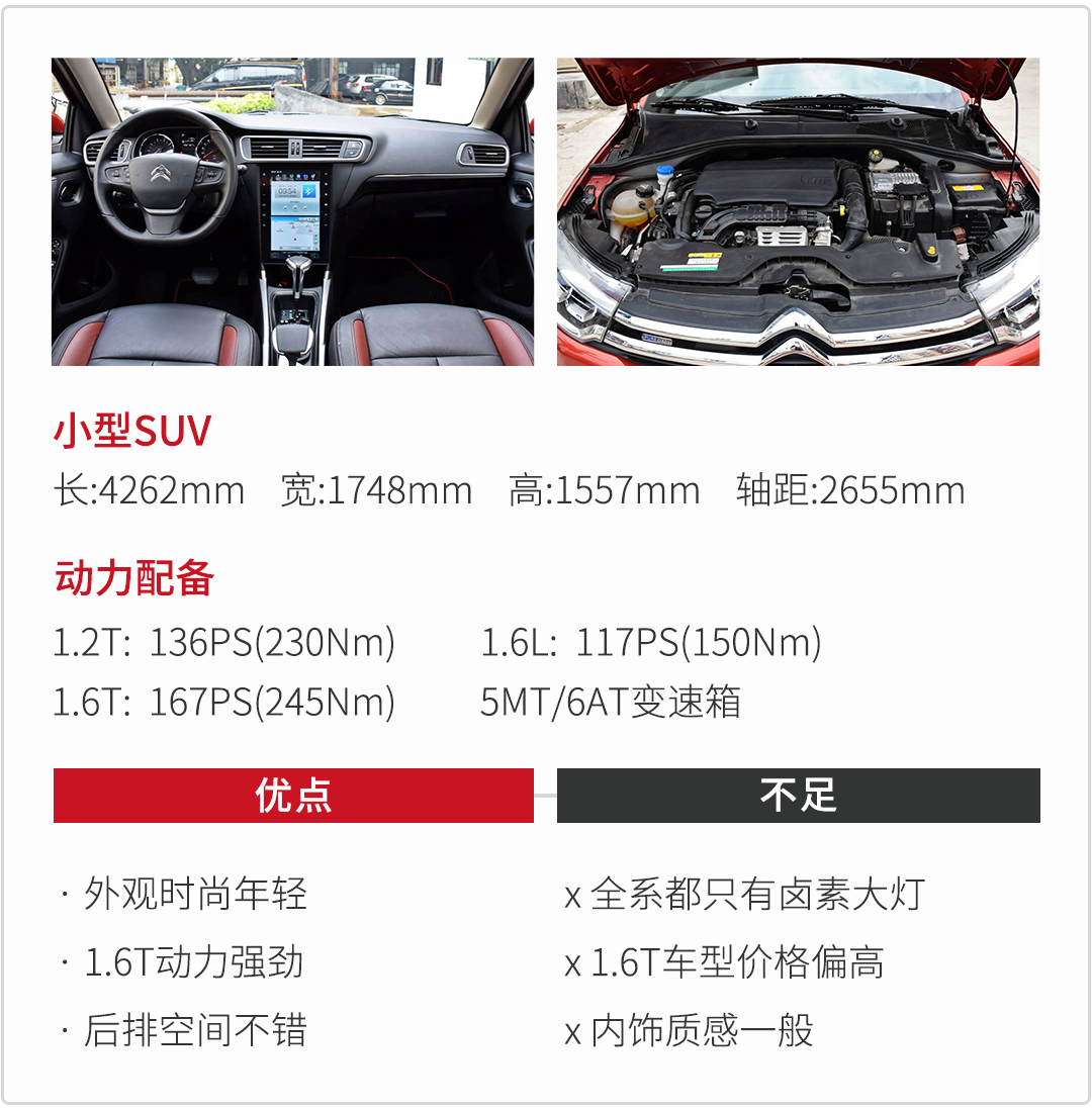 C3-XR有1.2T、1.6L和1.6T三款发动机可选,我个人是会推荐购买1.6L+6AT的动力组合,平顺可靠,动力也算是够用。在这个动力组合下的两款车型中,指导价12.78万的自动先锋型更划算,比自动时尚型多了9000块,但也换上了16寸轮圈,加装了前后排头部气囊、多功能方向盘、中控大屏、LED日间行车灯和皮织物混搭座椅。