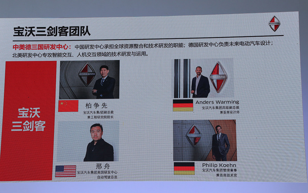宝沃汽车“严谨、突破、创新”的工程师精神,快速吸引并凝聚全球一流人才资源。目前,宝沃汽车已经拥有来自全球12个国家、16个汽车品牌、2300多名顶级工程师人才,其中工程技术人员在整个宝沃员工中占比更高达40%。高精尖人才的汇集,加速了技术研发和产品研发的速度,大大缩短了人与人、人与设备之间改良和消化时间,成为宝沃汽车事业发展宝贵的“软资产”。通过汇聚全球一流人才,宝沃汽车现已分别在斯图加特、北京、硅谷成立研发中心,并打造出专属的 “宝沃三剑客”全球优秀工程师及运营团队。人才济济的三大中心各有分工又相互合作,成为一个有机连动的整体在协同运作。其中,中国工程院是“宝沃三剑客”的核心,作为完整的产品创造中心,拥有众多国际化优秀人才,秉承源自德国品质的高标准和高要求,进行底盘、车身、发动机的开发以及动力性能、整车架构、碰撞安全和法规认证等工作,并对三地进行统筹规划和管理。