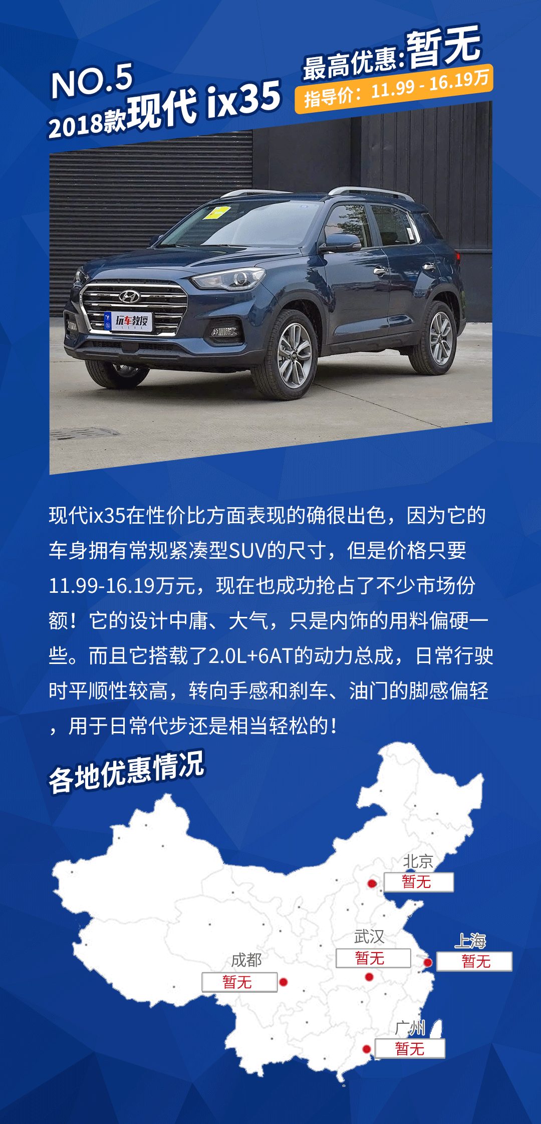 这6款SUV车型的优惠排名大家都已经看到了,那么它们具体的优惠情况是怎么样的呢?
