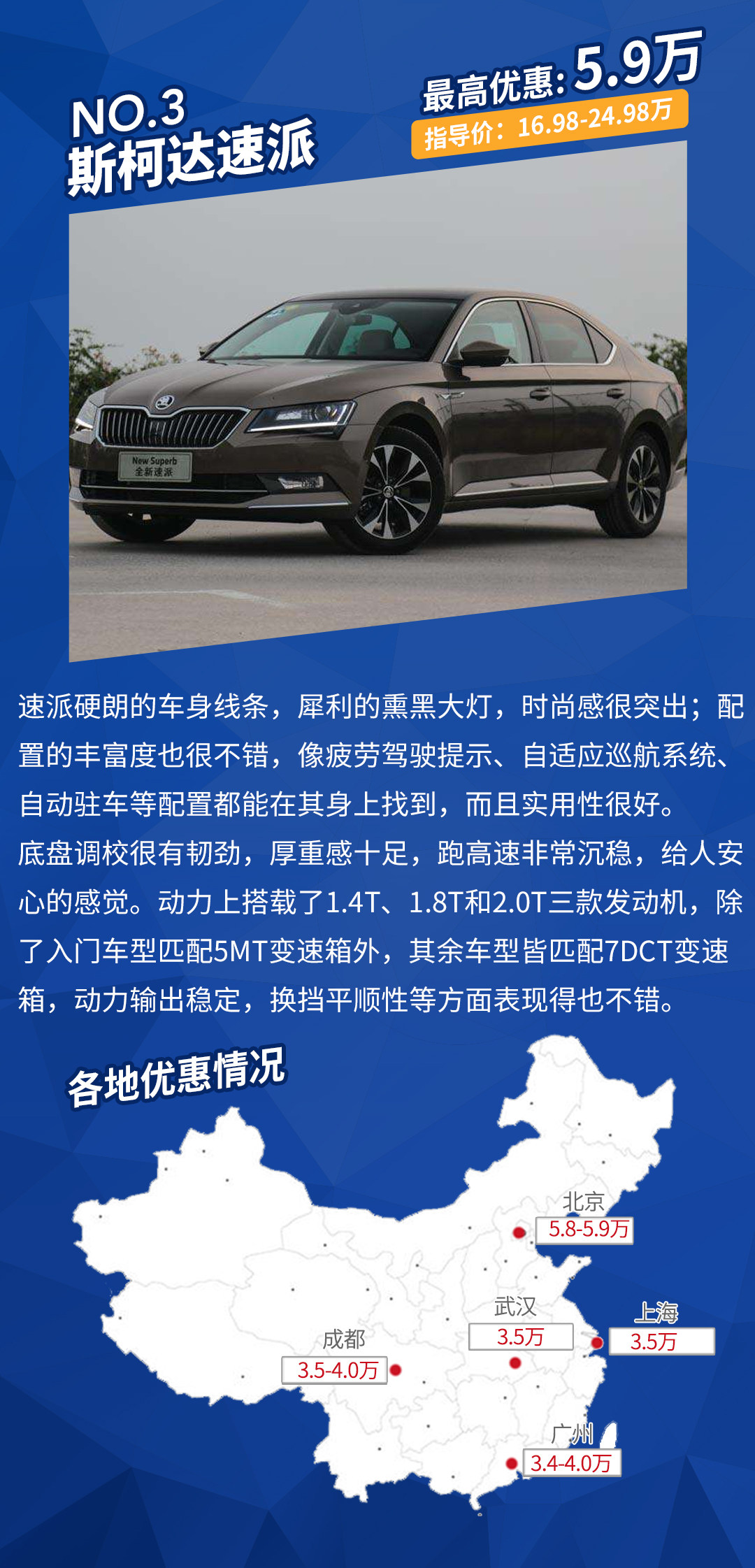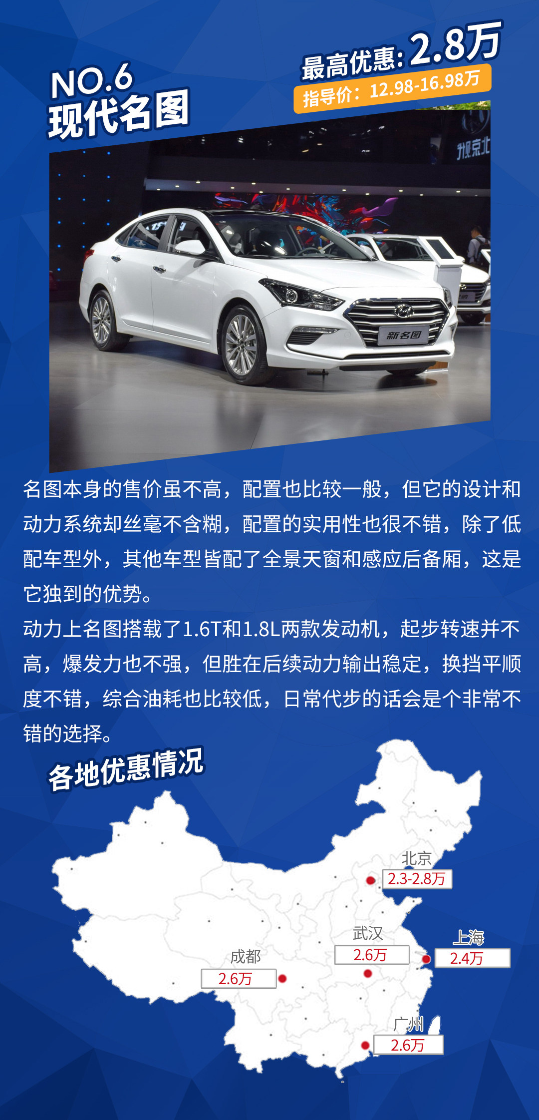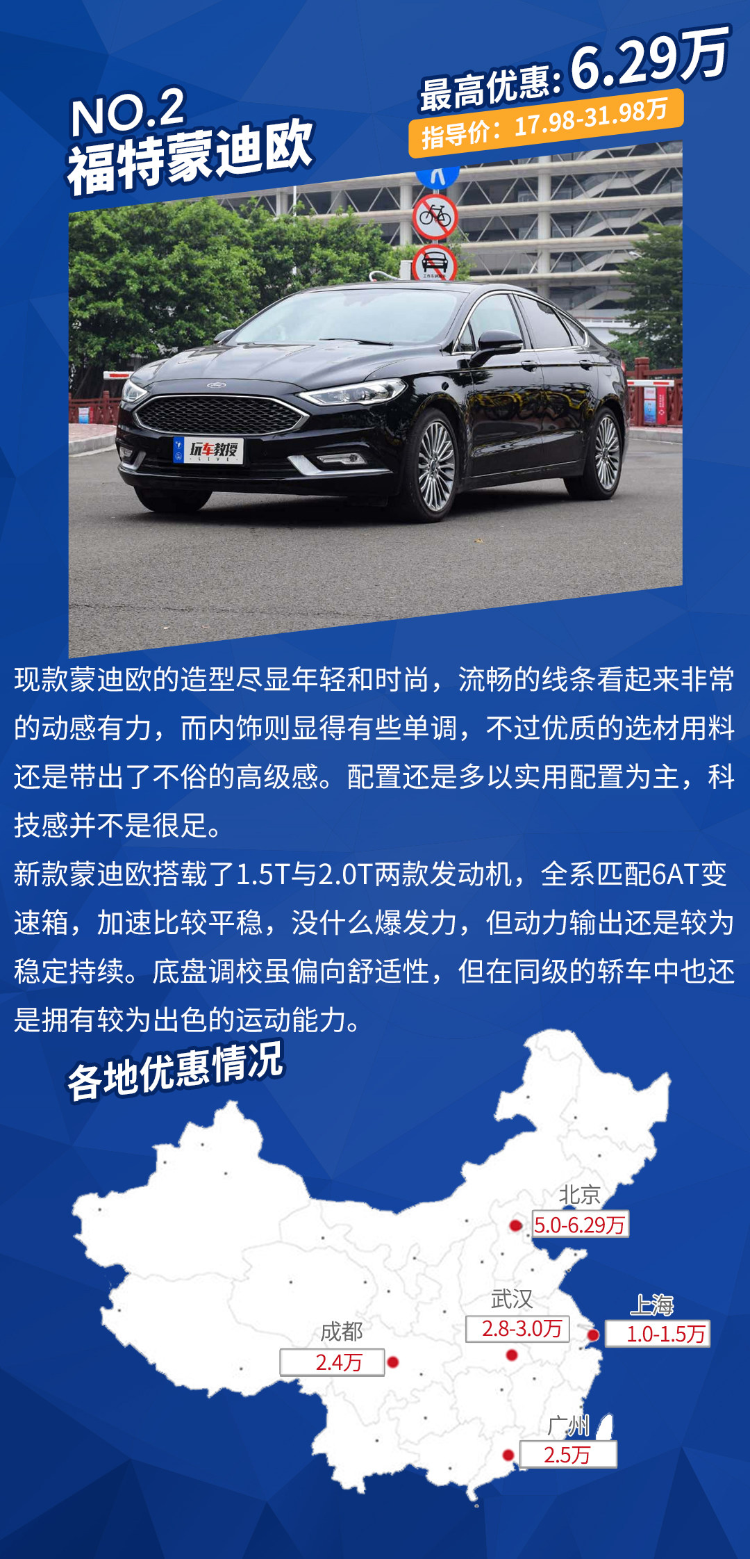 相信通过上面的优惠排行榜,大家对这6款中型车的优惠排名已有所了解,那么这6款车具体有什么样的表现,优惠力度怎么样呢?我们接着往下看