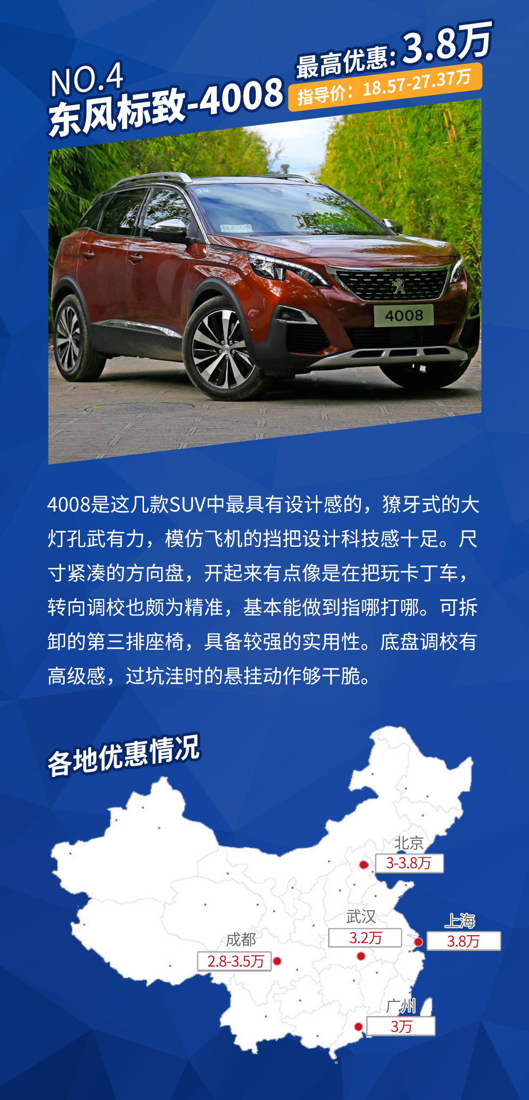 SUV市场早已是每个车企必争之地,最先火起来的紧凑型SUV已经有非常多可选的车型。无论是合资还是自主,这个级别的竞争不可谓不充分,因此,大家都会推出一些优惠来吸引更多的客户。下面教授就挑六款优惠幅度比较大的SUV给大家推荐一下。