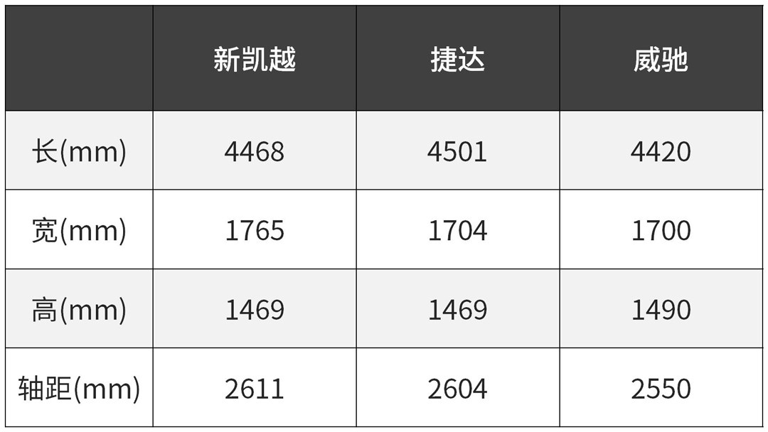 相比竞争对手,新凯越在宽度和轴距上占据比较大的优势。