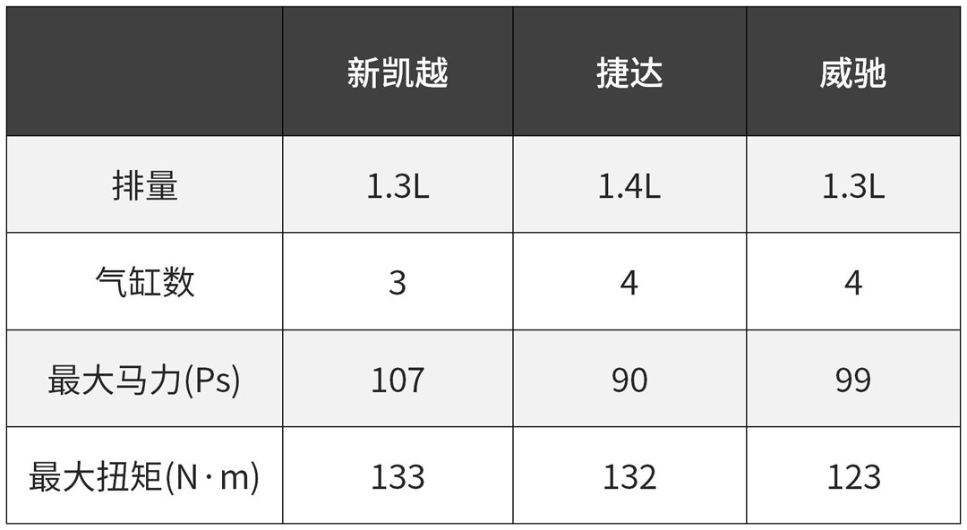 动力规格方面,全系装配一台1.3L三缸自然吸气发动机,并有5MT和CVT变速箱可选,数据对比同级一些四缸对手也稍占优势,动力够用,并且燃油经济性也很好,想知道具体试驾感受的小伙伴,可以点击这里查看详细的试驾文章噢!