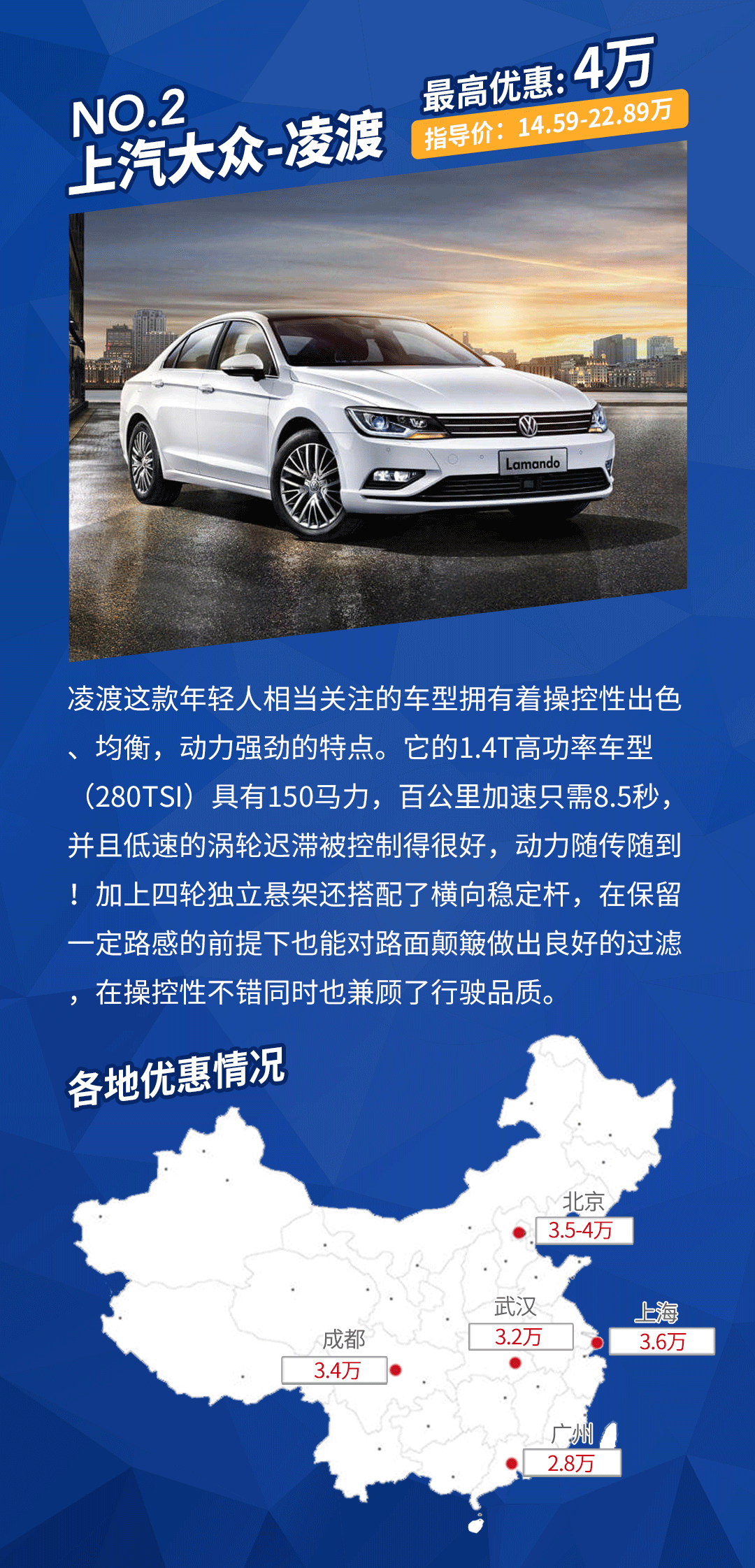 由此可见,凌渡在广州、上海和成都的优惠幅度给力,并且不需要搭配什么消费项目,在这些地区的用户想买它的话真的可以行动起来。