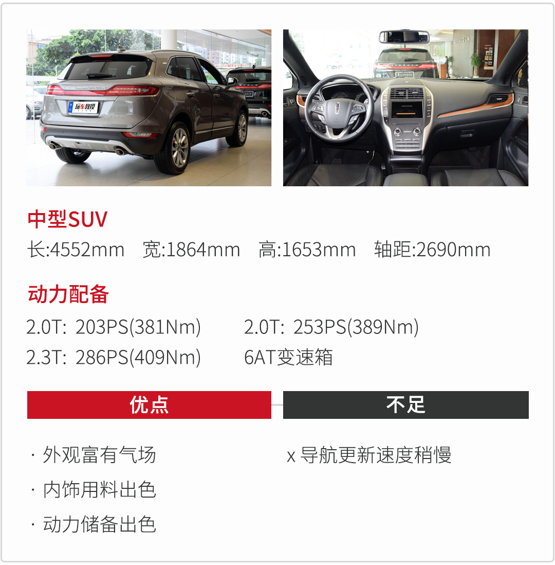 车型点评:无论是行驶舒适感还是配置全面性,林肯MKC都有着不错的表现,而且它还是以进口的方式来到我们身边,品质方面有着一定优势。并不高的定价和多项配置的下放让它的性价比其实一直都挺好。