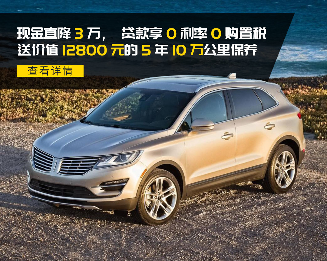 想购买林肯品牌车型的朋友可要留意了,林肯MKC车型现在现金钜惠30000元!而且非常贴心的是贷款购车享受0利率0购置税优惠服务,还送价值12800元的5年10万公里保养!可谓优惠幅度空前,想了解详细钜惠信息赶快点开点开上方小程序进一步了解!