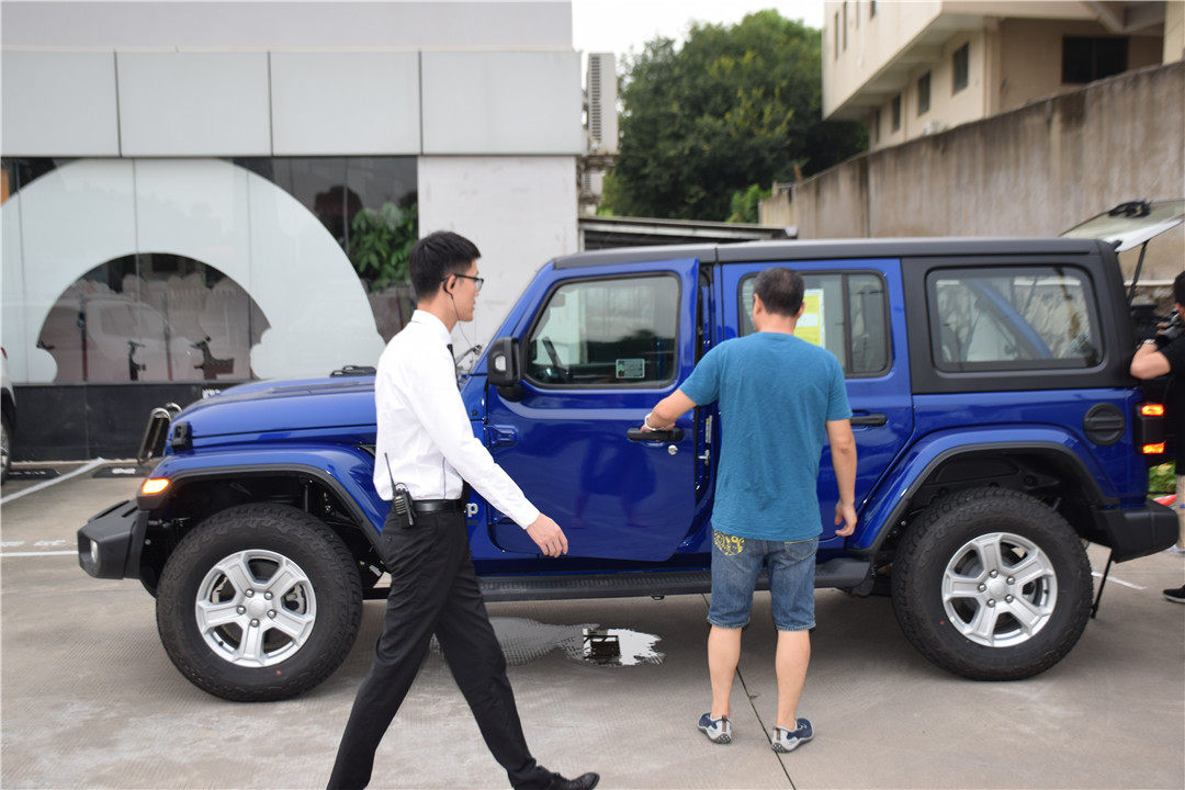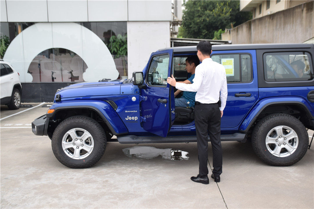 销售:先生您好,请问您是专程来看新款牧马人撒哈拉四门版吗?您如果有问题可以随时问我!