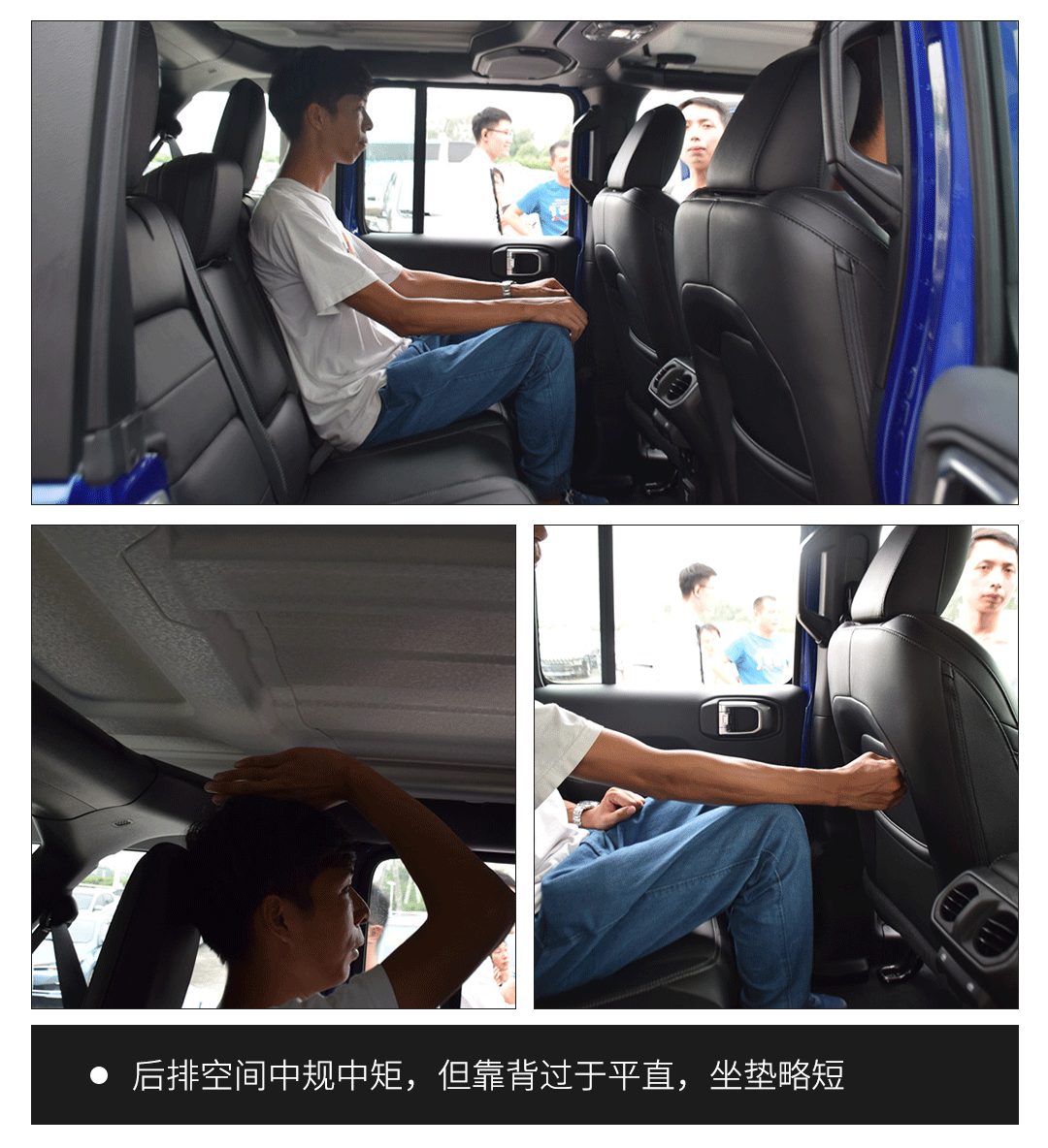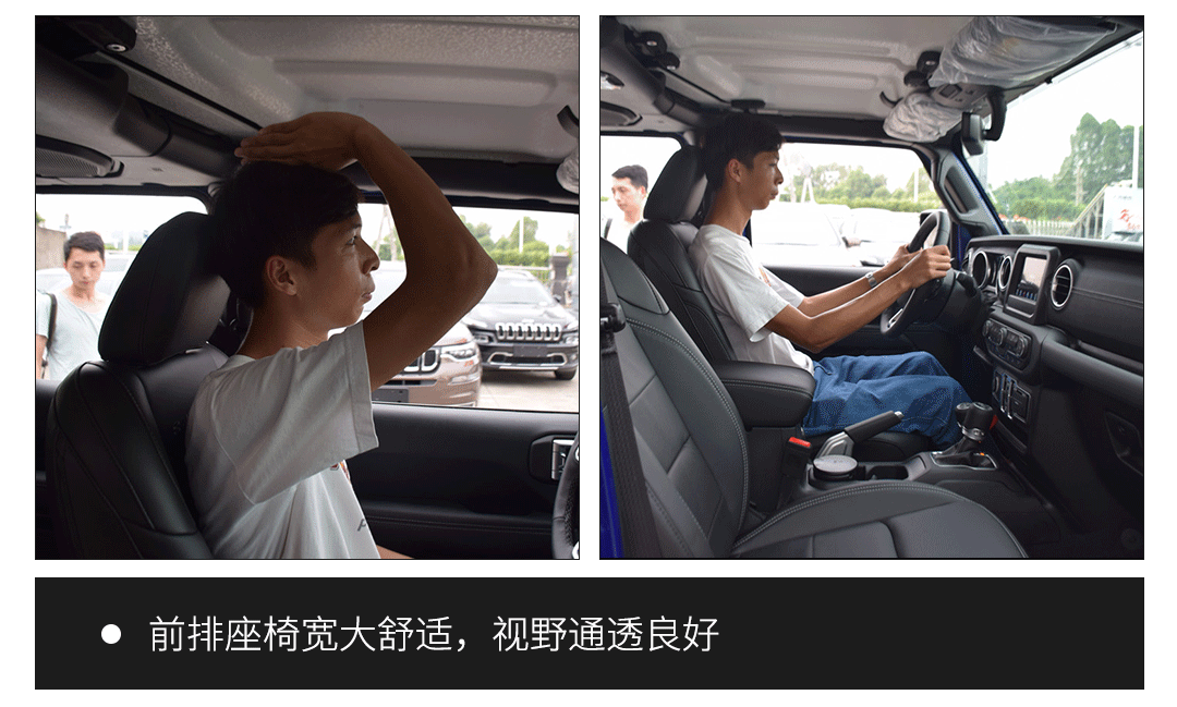 模特身高一米八,前排调整到合适坐姿后,头部空间余量大于四指,且得益于近乎垂直的前风挡和较低的侧窗下沿,因此视野十分通透,有利于越野看位,避开障碍物