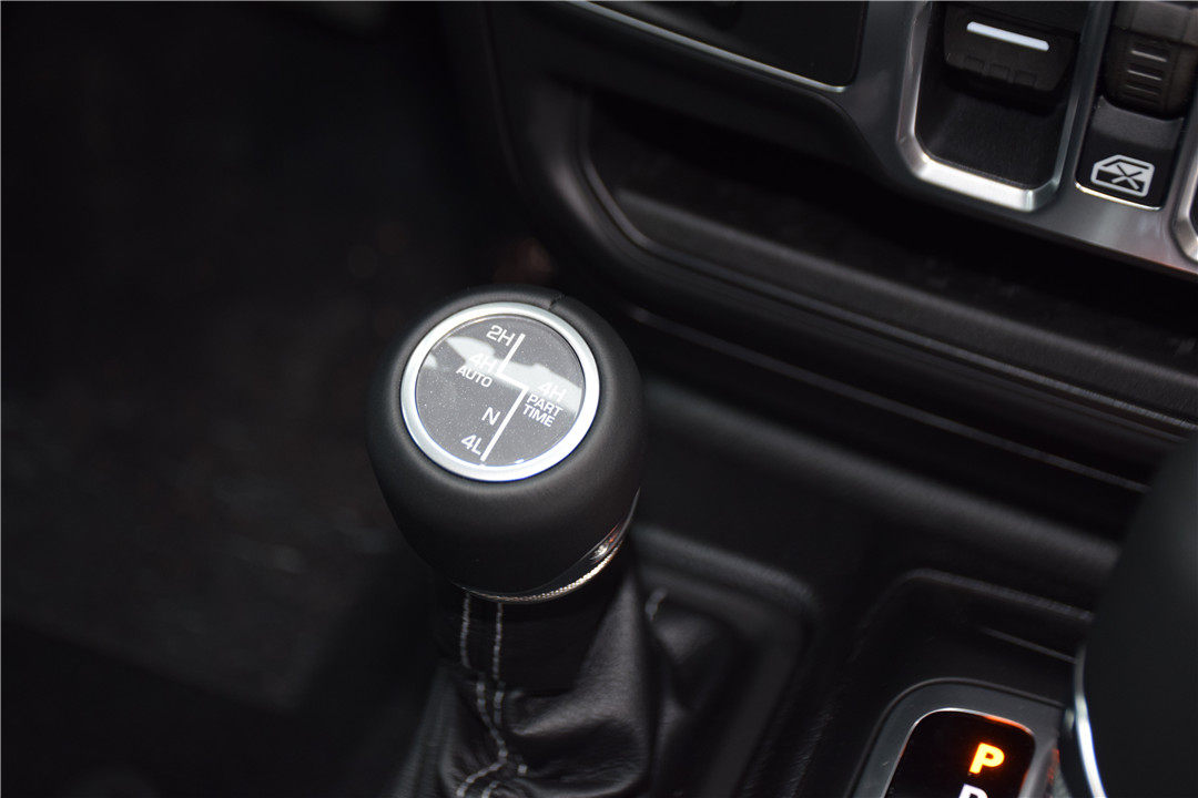 新款牧马人依旧采用分时四驱,不过分动箱增加了一个中央多片式离合器,因此多了一个4H AUTO档位,类似三菱的超选四驱,即使在铺装路面上也可以使用四驱,会根据需要给前桥分配动力,不像老款那样在湿滑路面需要来回切换两驱和四驱