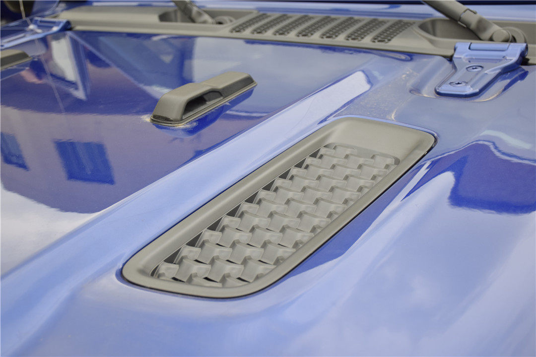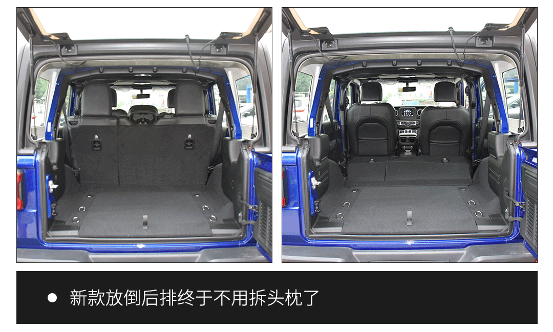 新款引擎盖上增加了两个散热孔饰板,且引擎盖本身比老款更为隆起,肌肉感更强,这可是老款车主梦寐以求都要改装的设计,新款牧马人都满足你了!