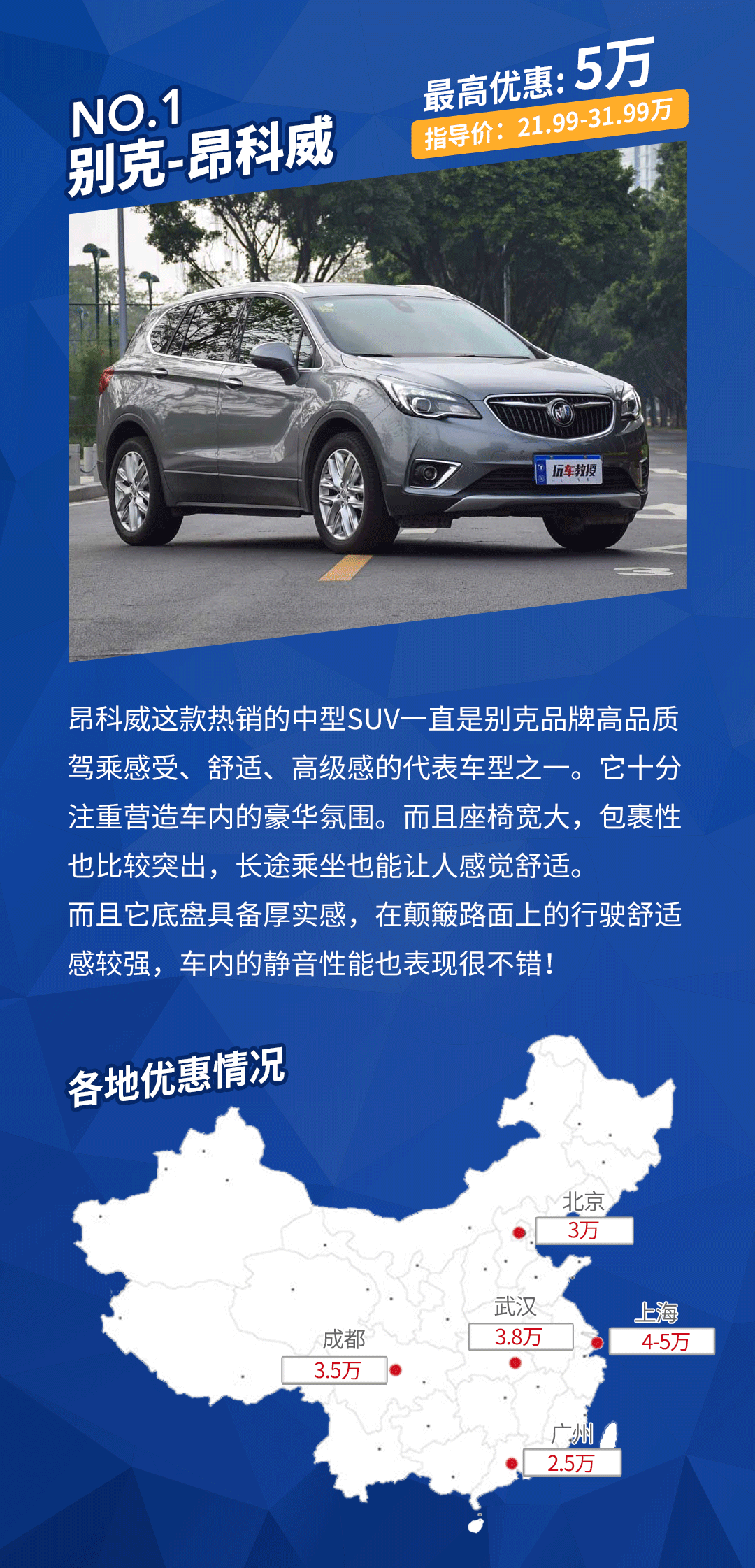车型点评:昂科威现在给出了挺不错的让利幅度,并且多数都是现金优惠,加上它的定价适中,在优惠过后的性价比表现无疑是出色的,喜欢它的朋友快行动起来!