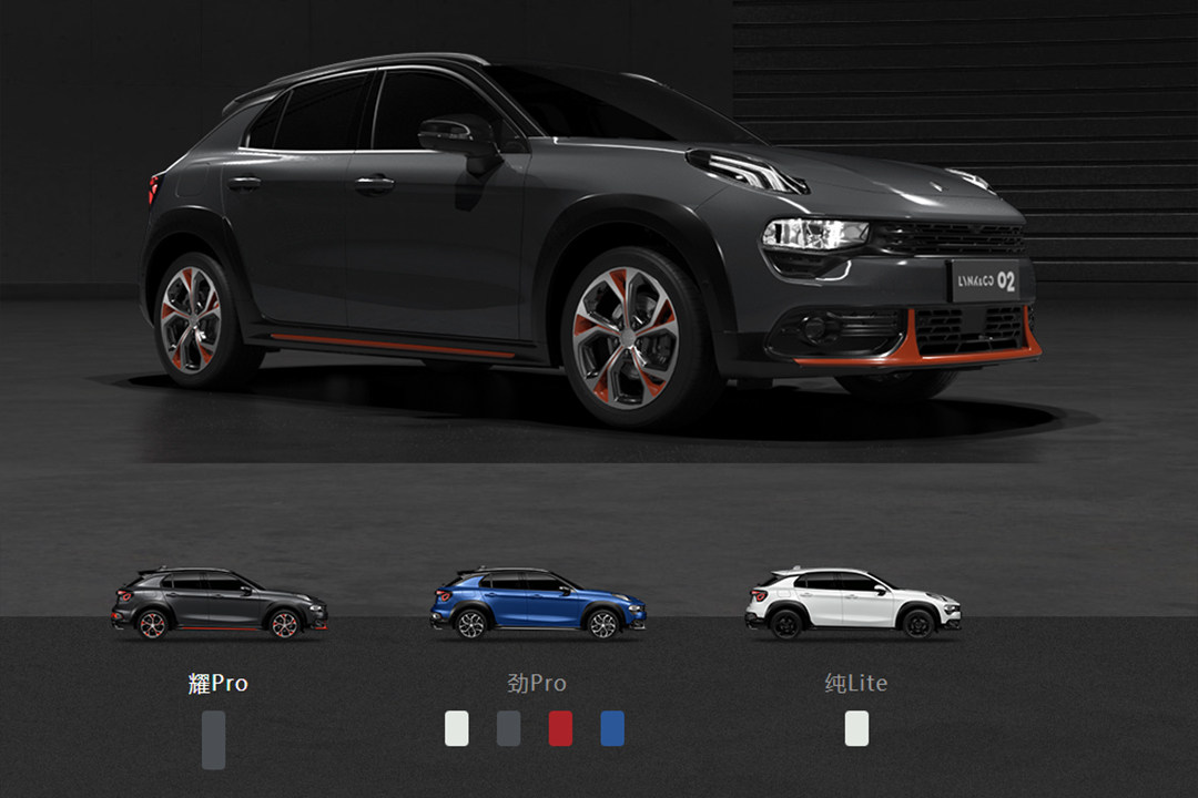 02分为纯、耀、劲三种车型,纯是低配的,耀采用了撞色的外观细节,看起来足够潮流,而劲的细节,不会很花哨,并且很有力量感。