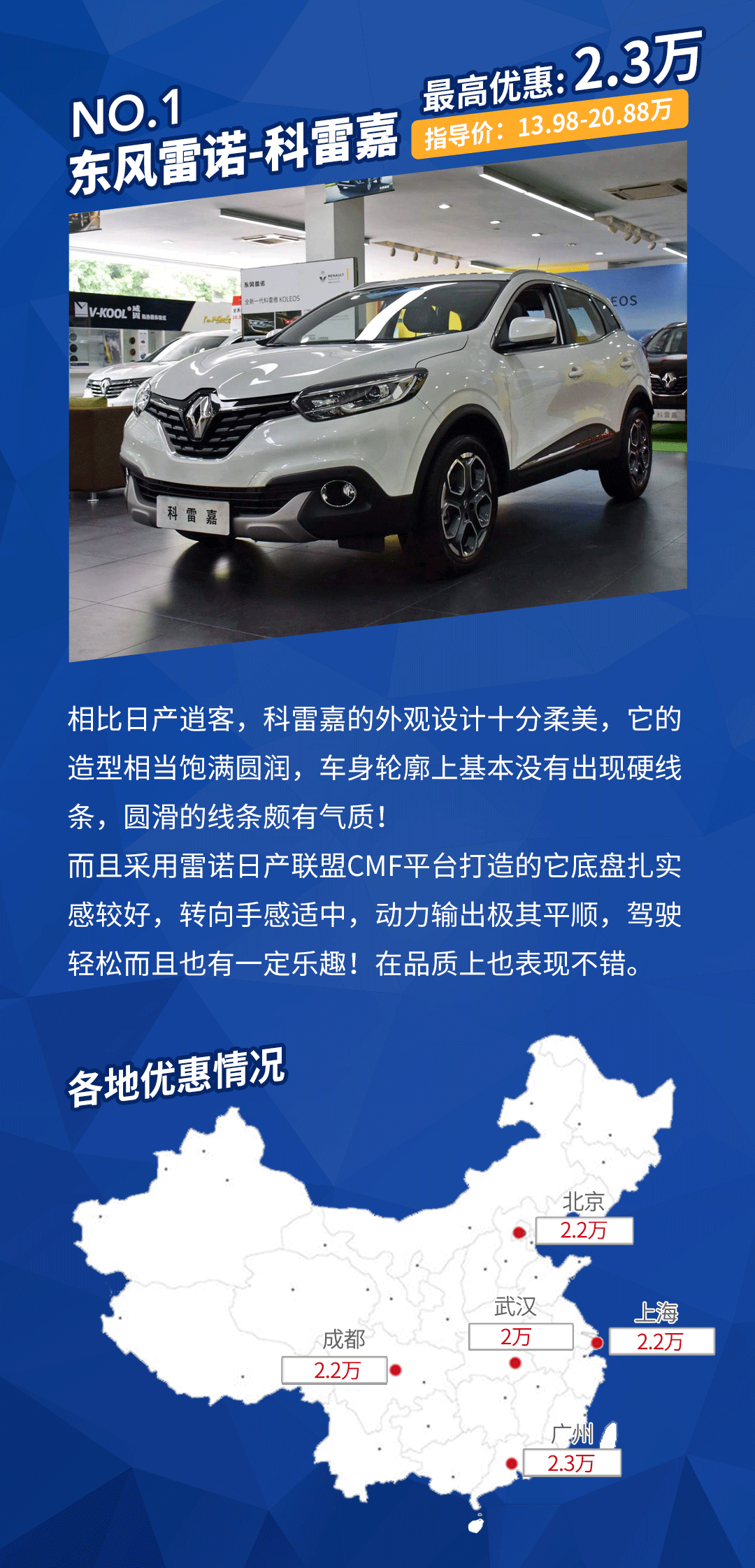 科雷嘉优惠详情:在广州、北京、武汉、上海和成都都给出了现金优惠,相当不错!