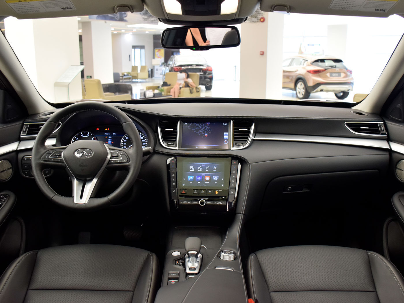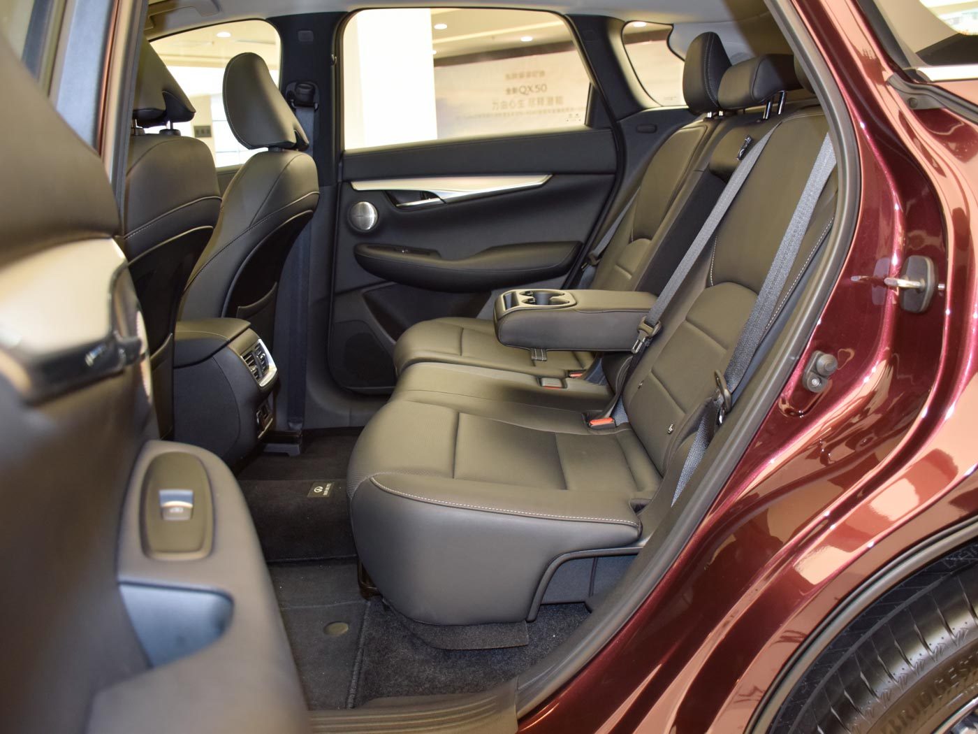 很多人对空间有比较高的要求,所以喜欢加长的车型,这无可厚非,QX50并没有加长,我们来看看它的空间是否足够,可以看到,我1.76m的身高在后排腿部空间还有很好的表现,头部也如此,反正我个人觉得是够了,你们觉得呢?