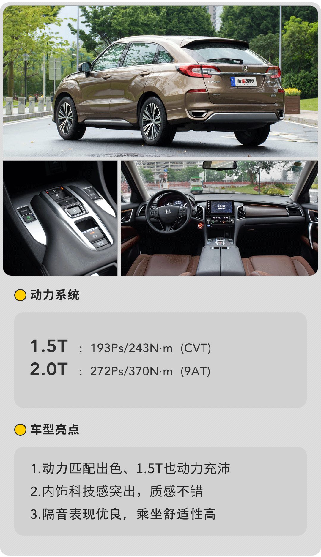 而且内饰的豪华质感也比以往的本田车型有了不少进步,棕色的座椅、皮革配色,它与黑色的中控搭配带有一定的温馨、豪华气息,大面积搪塑材质的中控带有缝线装饰,哑光木纹饰板在档次感上没啥毛病。而且它配备HUD抬头显示、车道偏离预警、防碰撞预警等科技性配置,2.0T车型还采用了前卫的按钮式换挡设计!