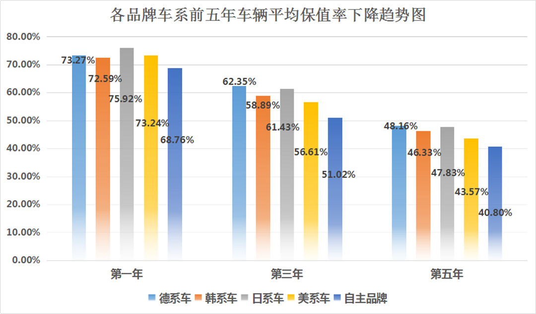 为什么二手车说要选择买主流的合资品牌车呢?在说之前我们来看看主流合资品牌车与自主&非主流合资品牌车间的保值率下降趋势。