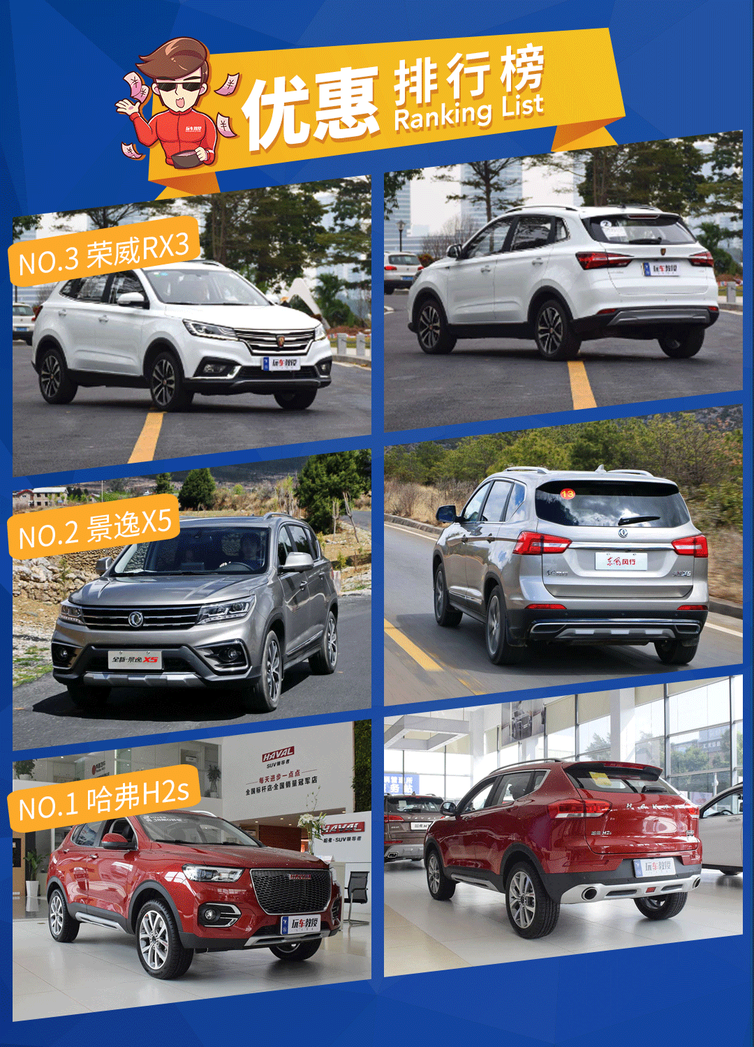 写在最后:在这次优惠调查中锐腾和哈弗H2s的优惠无疑是相当大的,锐腾的动力性能出众,设计也相当具有运动化气息,2.0T车型有具备钢炮型SUV的气质!而哈弗H2s的内饰质感突出,而且行驶舒适性表现不错,喜欢它们的话可以在周末去实车感受一下!