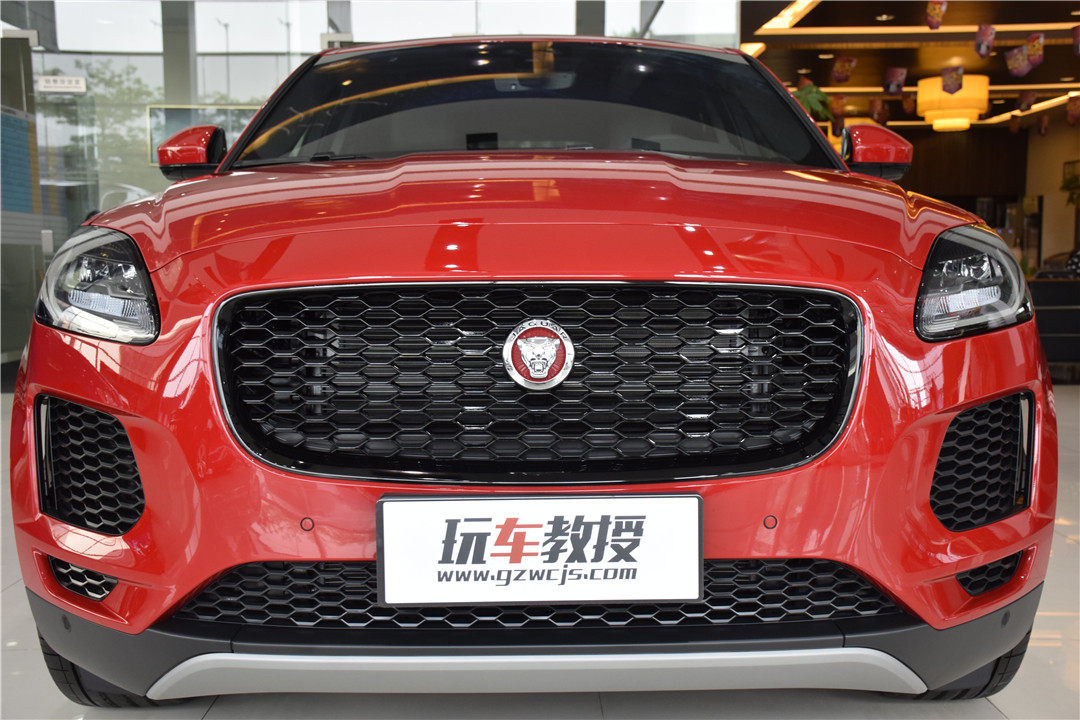 从正前方第一眼看去,E-PACE的大灯、中网、保险杠造型都和自家的跑车F-TYPE非常相似,让人感觉是一辆从两边挤扁拉高的F-TYPE跑车。