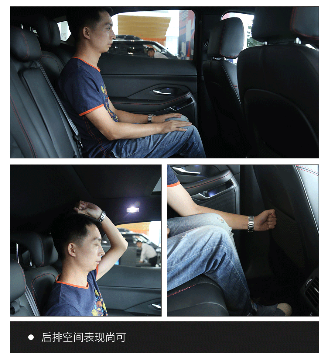 后排头部空间余量一拳,腿部空间余量半个小臂,在同级别中属于合格水平。