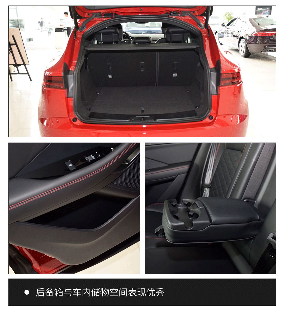 尾部造型则是中规中矩的捷豹家族式设计,长条形尾灯和双边双出大口径排气管十分讨人喜爱。