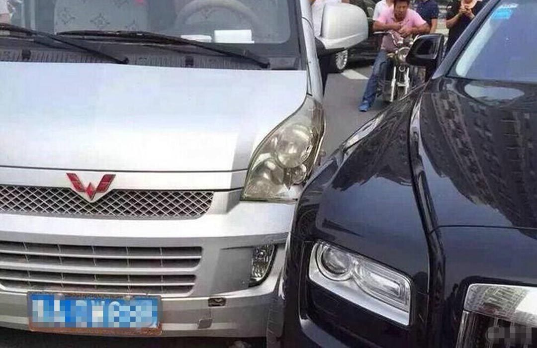 然后几乎一夜之间,满大街的车子都贴上了五菱宏光S的车标,无论是法拉利,兰博基尼,还是BBA。然后我们就陆续开始看到真正的五菱宏光在街上怒怼其他豪车的照片,管你是劳斯莱斯还是卡罗拉。并且被怼后你还不敢有半句怨言,因为你永远不知道车上有多少个人下来打你。