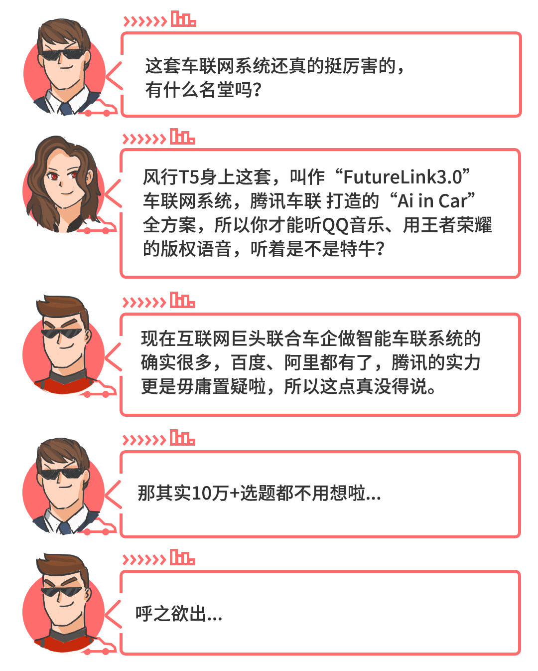 没错,拥有东风风行与腾讯车联联手打造的“FutureLink3.0”车联网系统的风行T5,将在9月份正式开售。有了这款车,你将体验最为智能的用车体验,你能想到的,你能做到的,只要轻声呼唤,风行T5统统都能帮你完美实现。