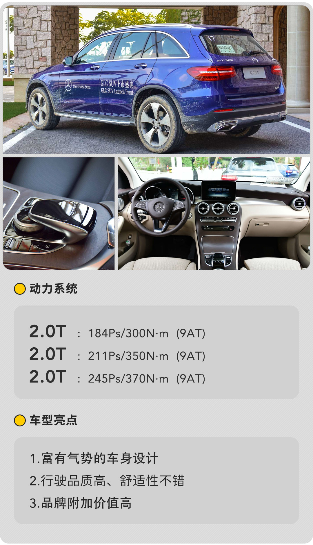 奔驰GLC和奥迪Q5的豪华品质相当不错,而且给出的市场优惠幅度大,性价比表现突出!保时捷-Macan的性能和拉风属性相当突出,值得我们多加关注!