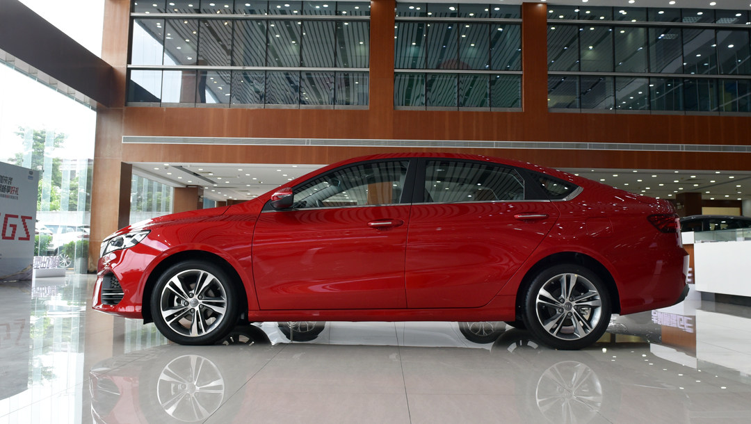 车身侧面设计是相当简洁的,腰线自然过渡到尾部,而且采用了溜背造型,与博瑞十分相似!