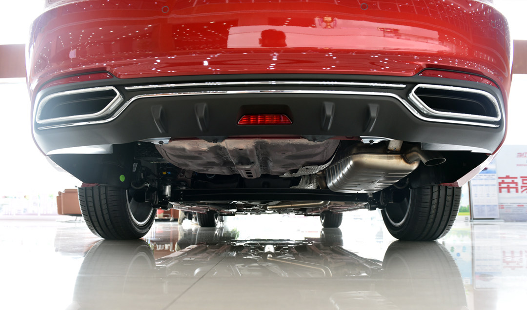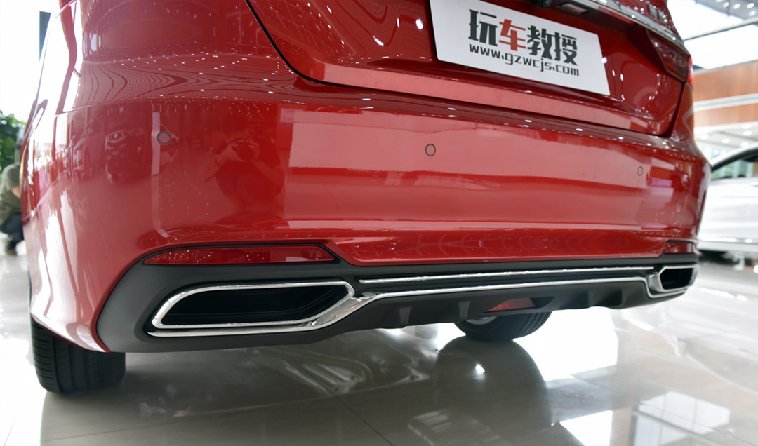 这样的设计风格让尾部的造型显得厚重,尾灯造型细长、并且由一条镀铬装饰条连接,底部采用了双镀铬排气的装饰,真正的排气管隐藏在下方。